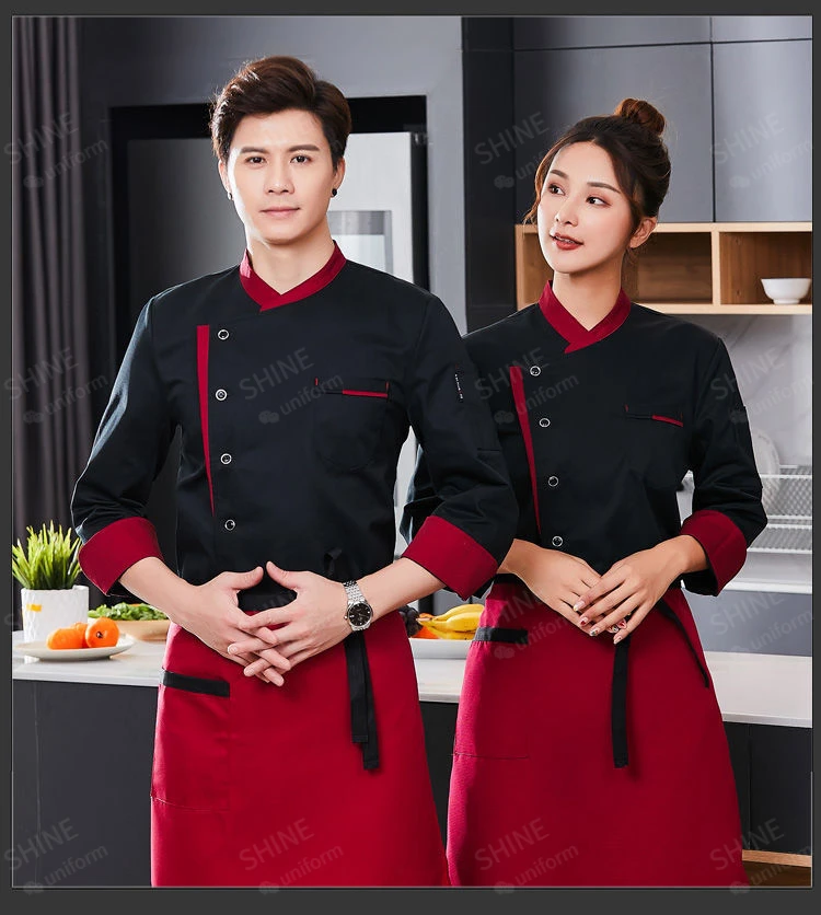 Restaurant Chef Jacket Long short Sleeve Hotel Cafe Kitchen Work Wear Bakery Cooking chef coat Tops Fast Food Chef Uniform men