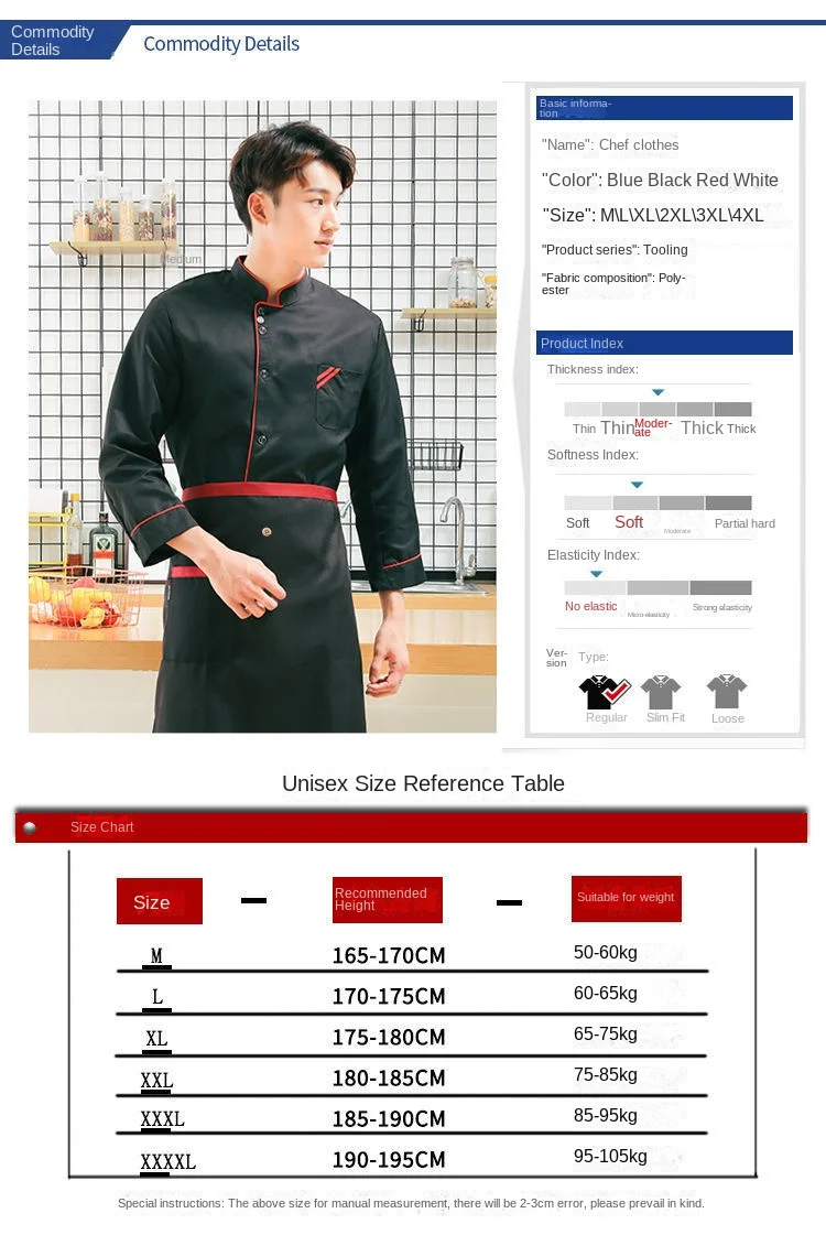 Restaurant Chef Jacket Top Long Short Sleeve Hotel Cafe Kitchen Work Wear Bakery Cooking Tops Fast Food Chef Uniform for Men