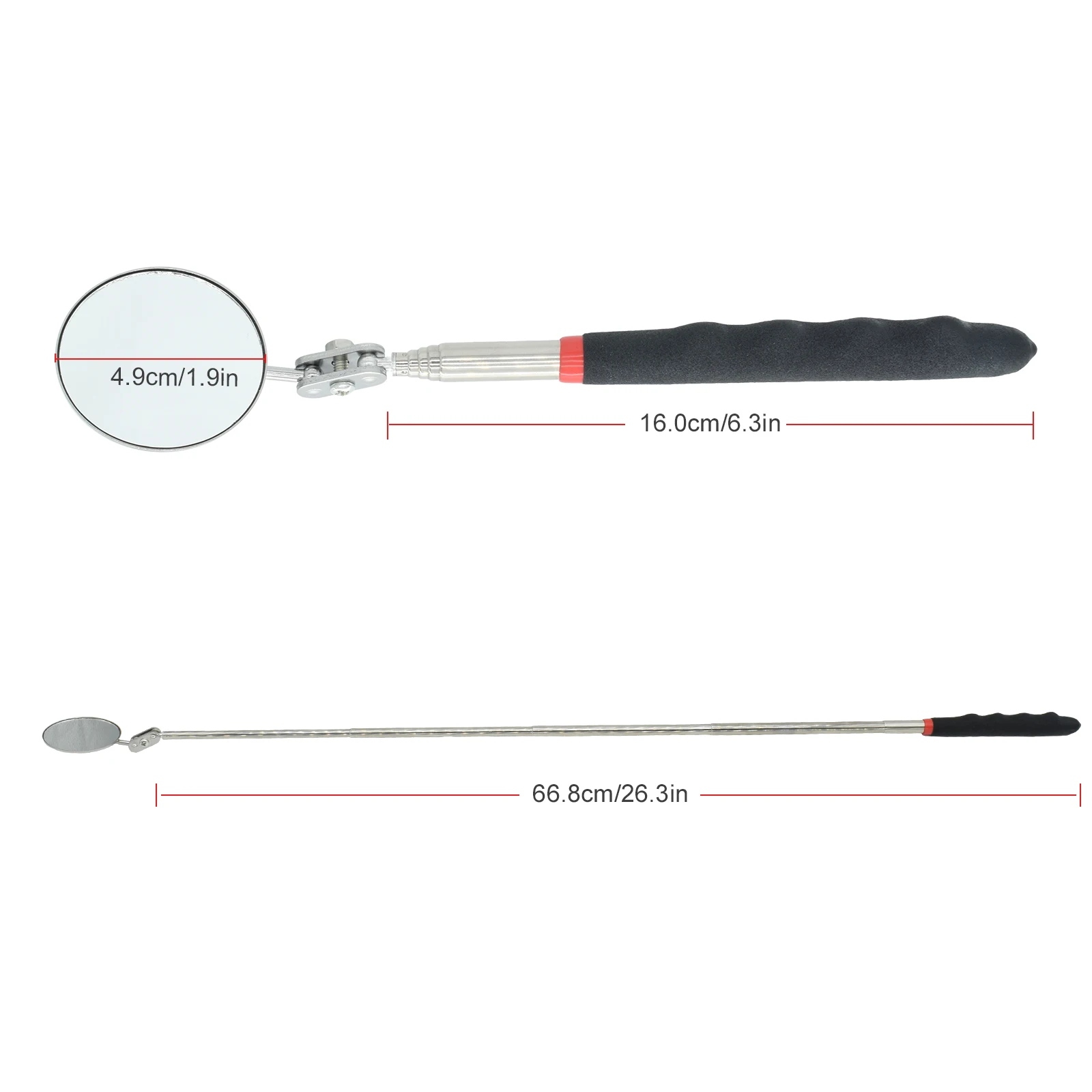 Adjustable length, mirror angle can be rotated, easy to extend into a small space or difficult to enter the gap to check the maintenance situation.