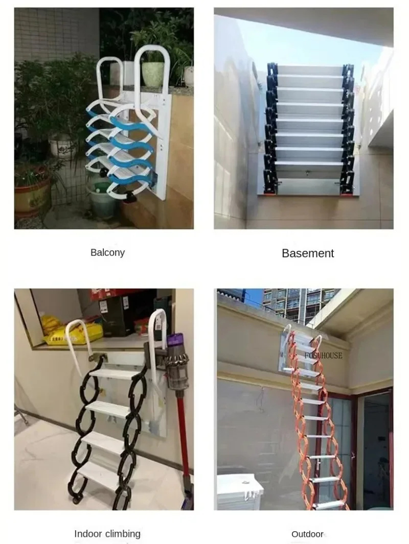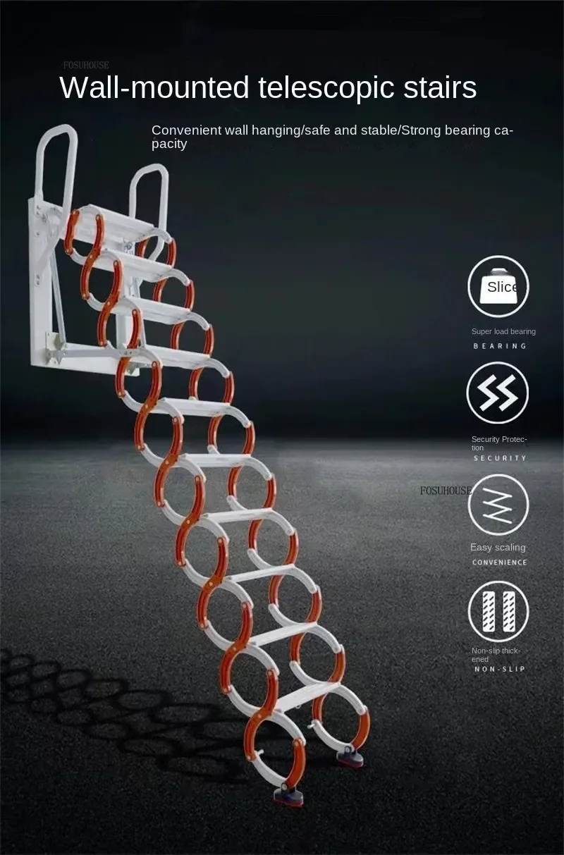 Retractable Wall-mounted Ladders Attic Stairs Lifting Indoor Outdoor Space-saving Folding Step Ladders Telescopic Stairs y