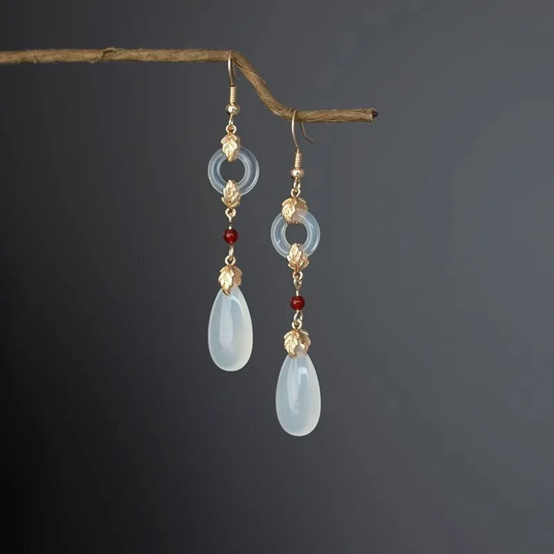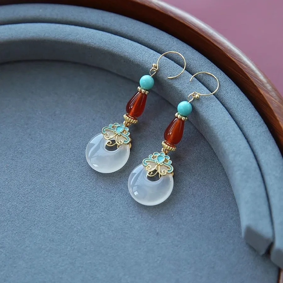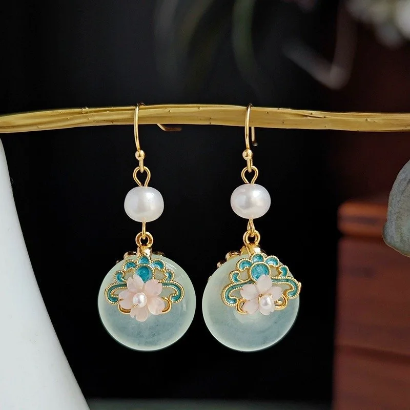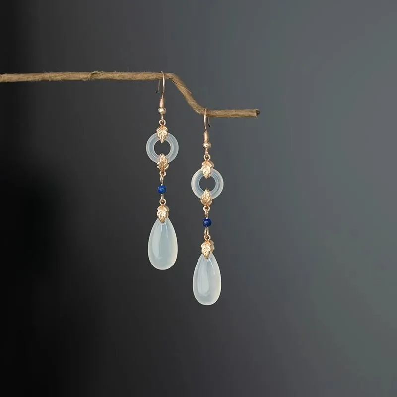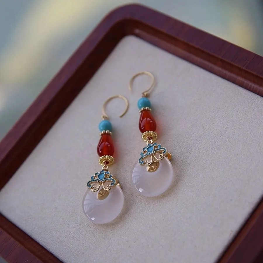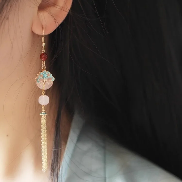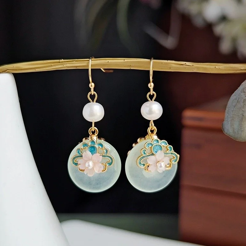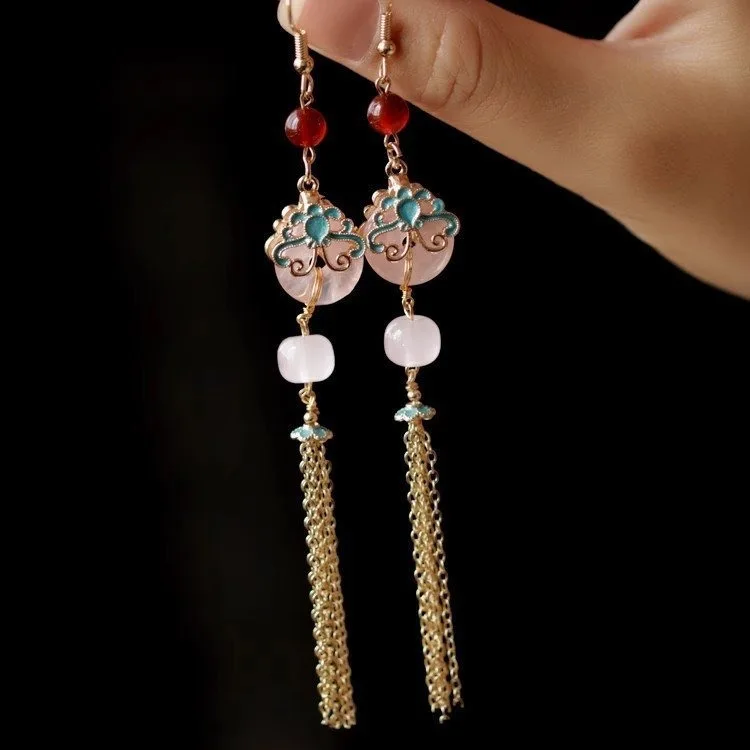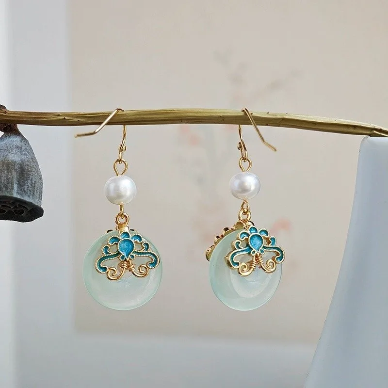 Retro Chinese Jade Earrings for Women Water Drop Shaped Ancient Palace Style Enamel Luxury Jewelry Elegant Ethnic Tassel Gifts