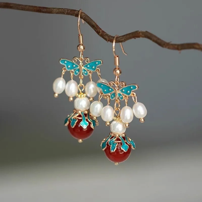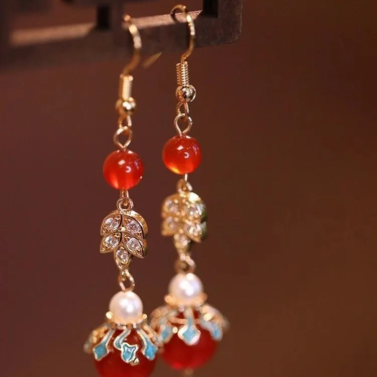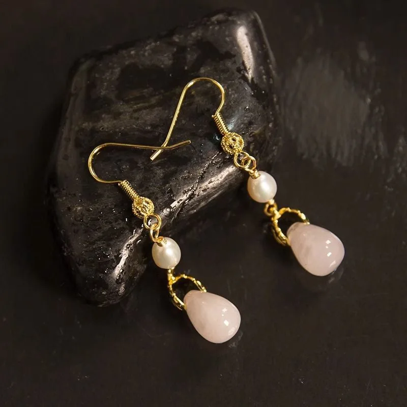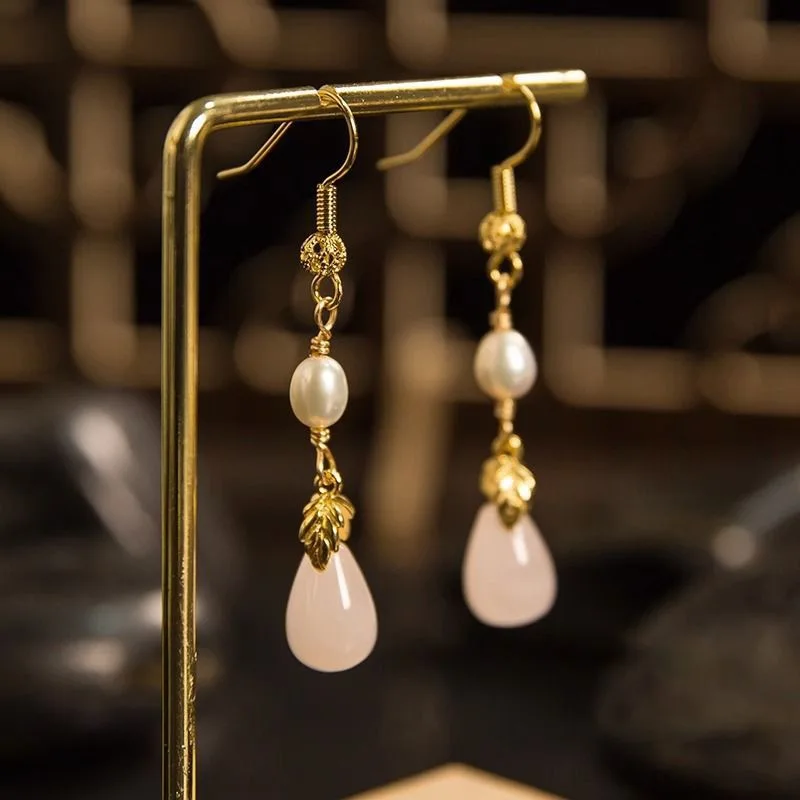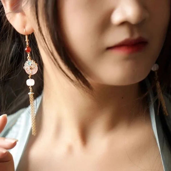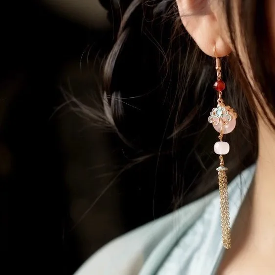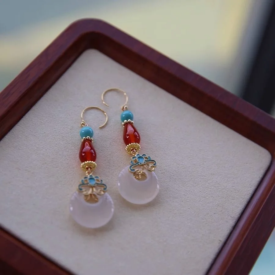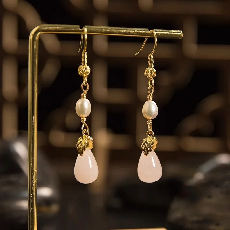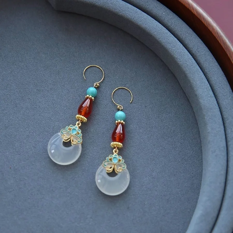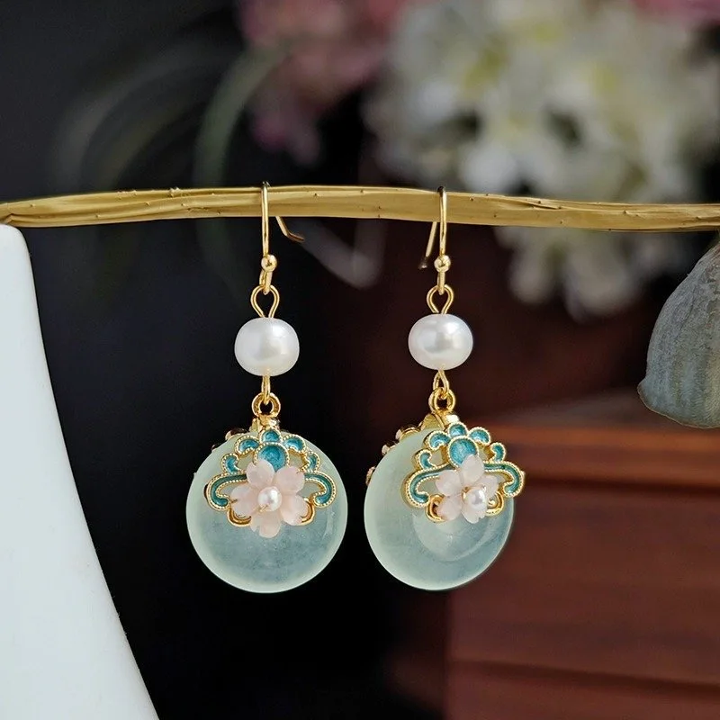 Retro Chinese Jade Earrings for Women Water Drop Shaped Ancient Palace Style Enamel Luxury Jewelry Elegant Ethnic Tassel Gifts