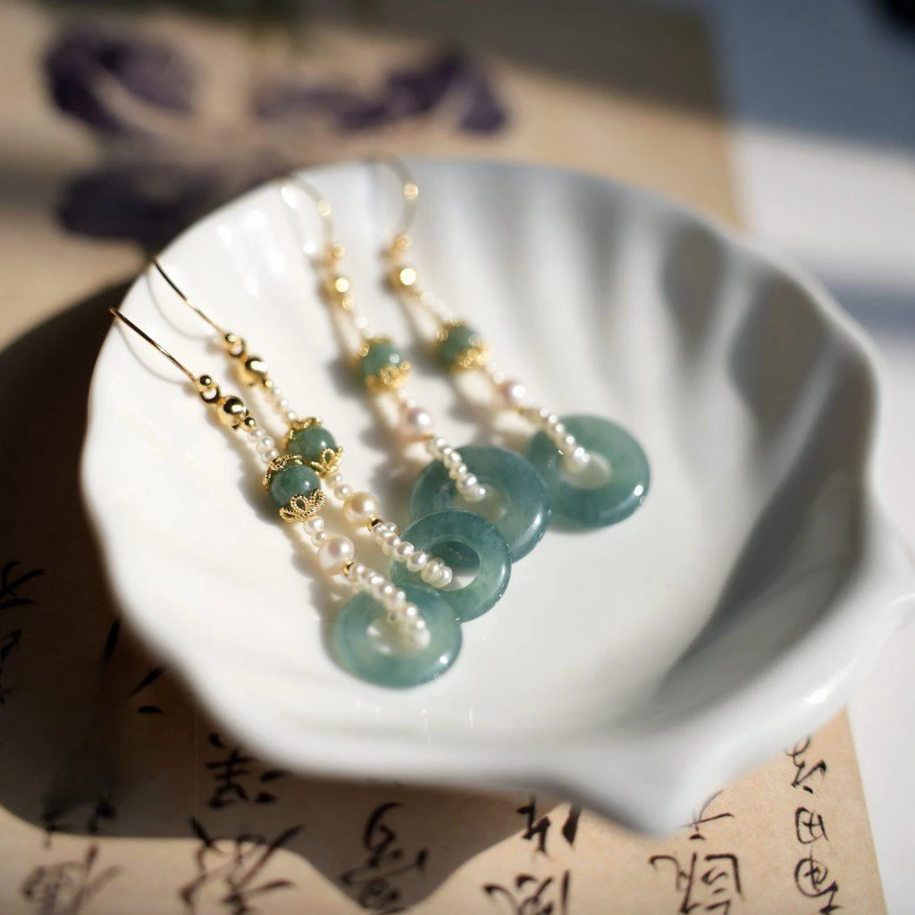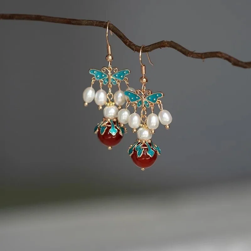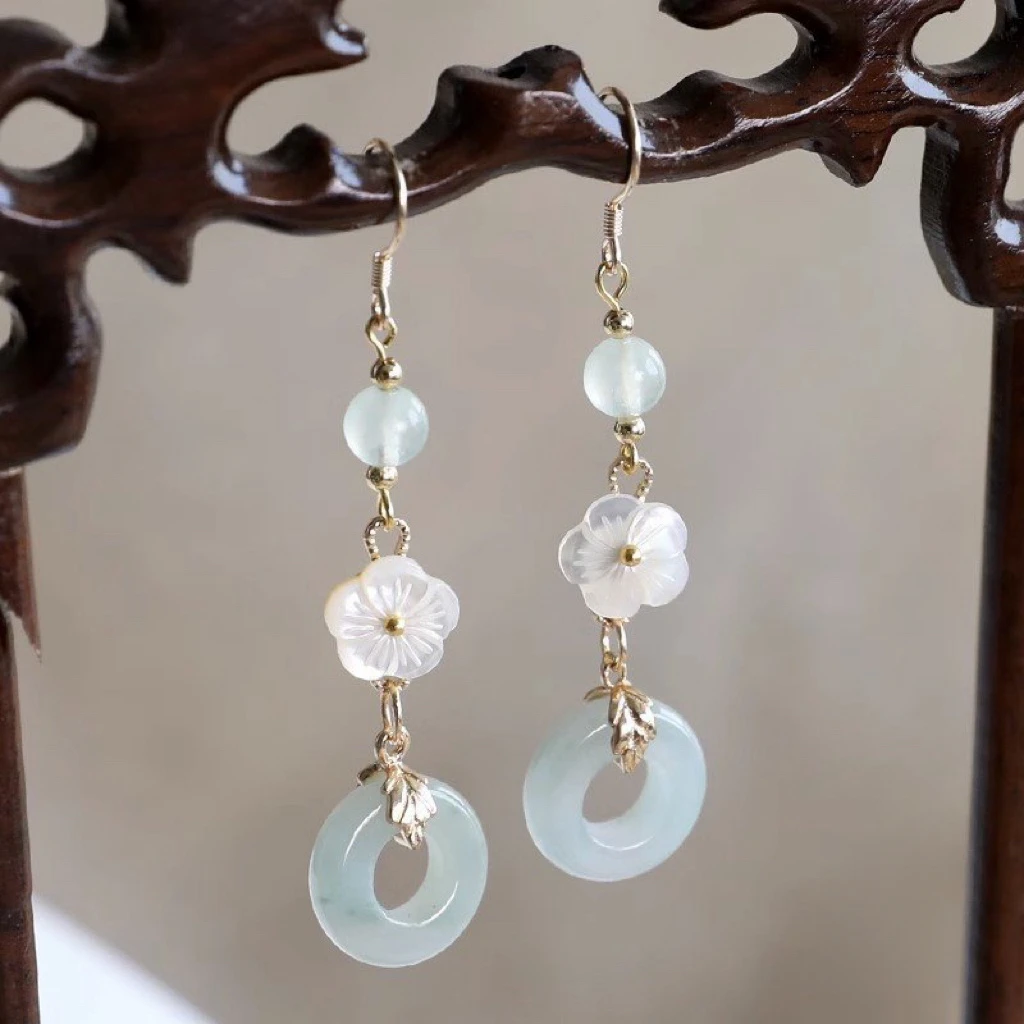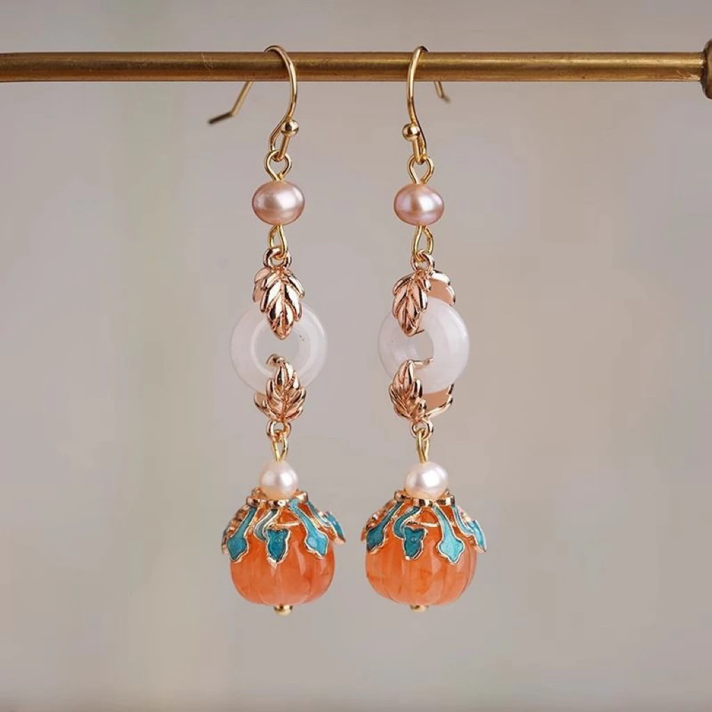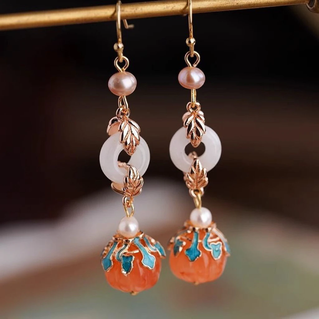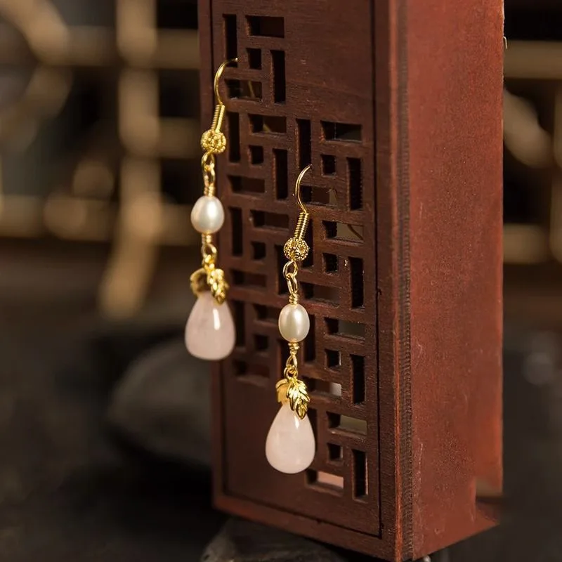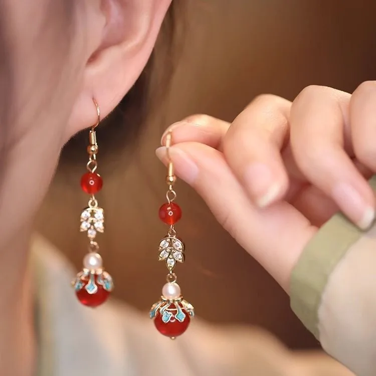 Retro Chinese Jade Earrings for Women Water Drop Shaped Ancient Palace Style Enamel Luxury Jewelry Elegant Ethnic Tassel Gifts