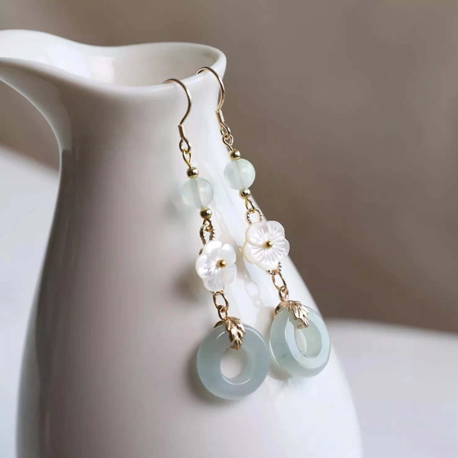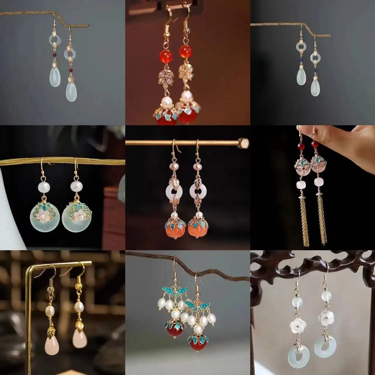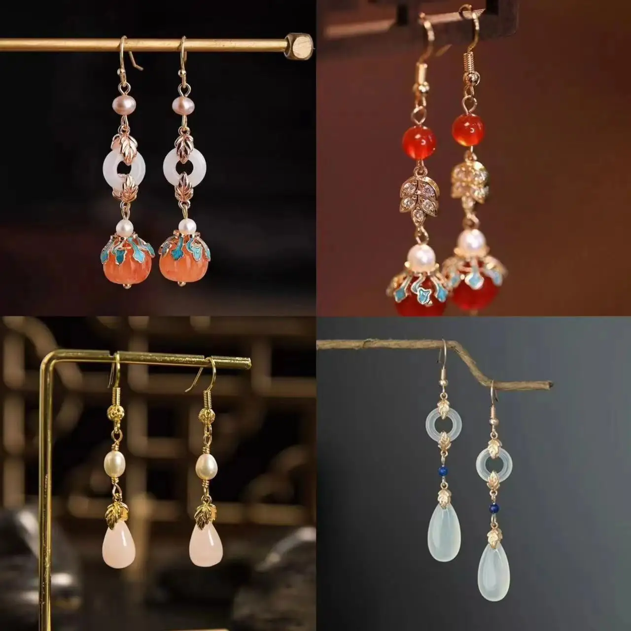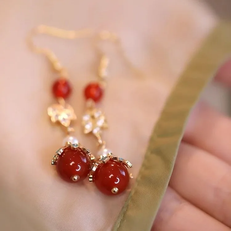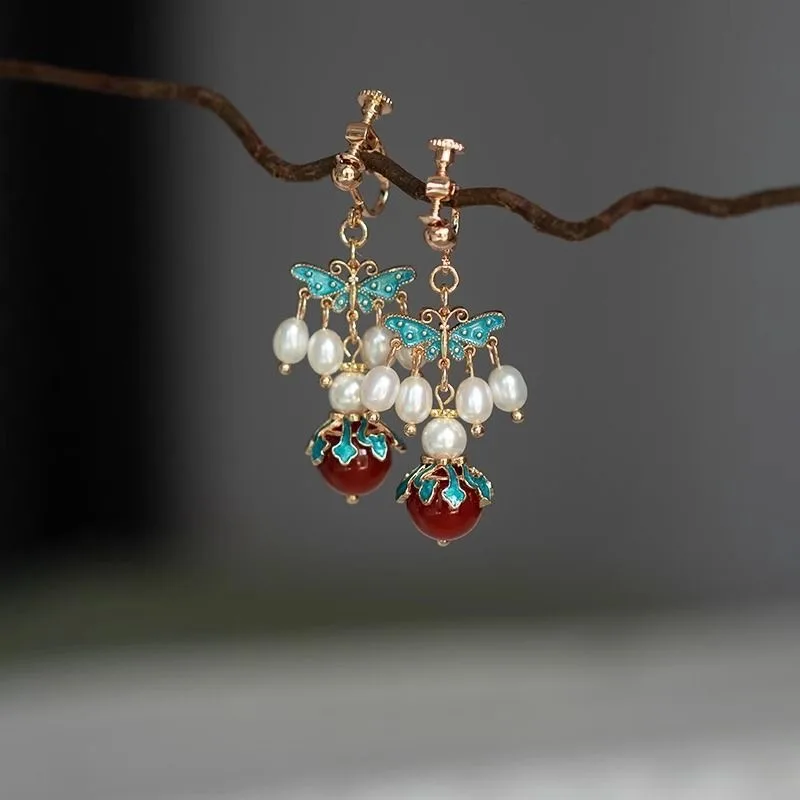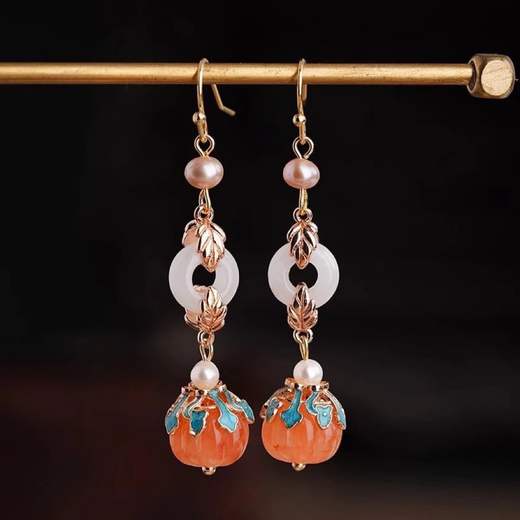 Retro Chinese Jade Earrings for Women Water Drop Shaped Ancient Palace Style Enamel Luxury Jewelry Elegant Ethnic Tassel Gifts