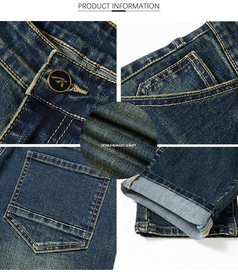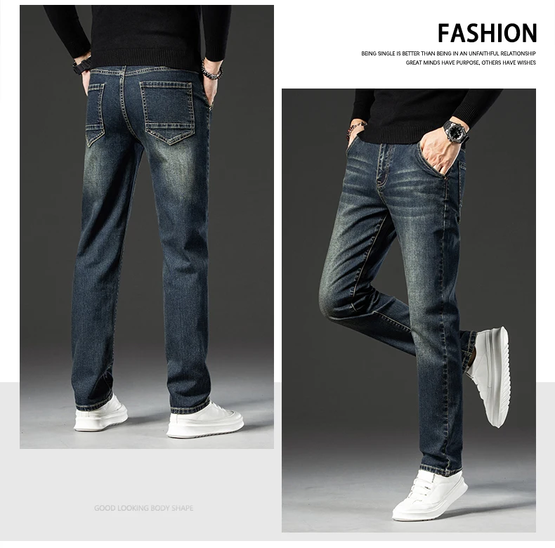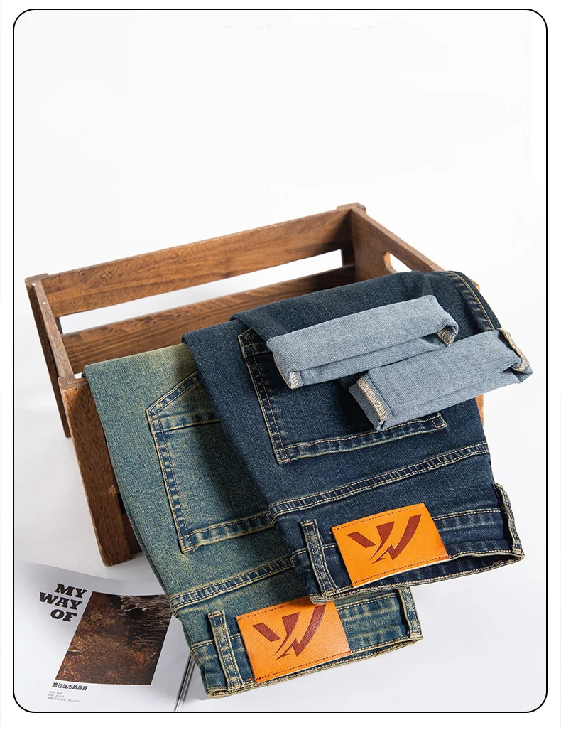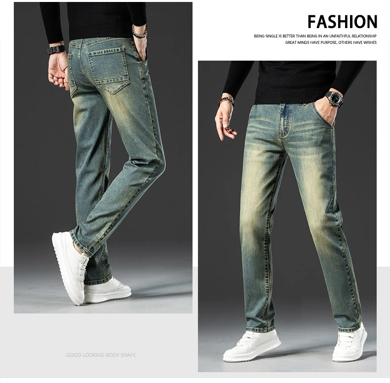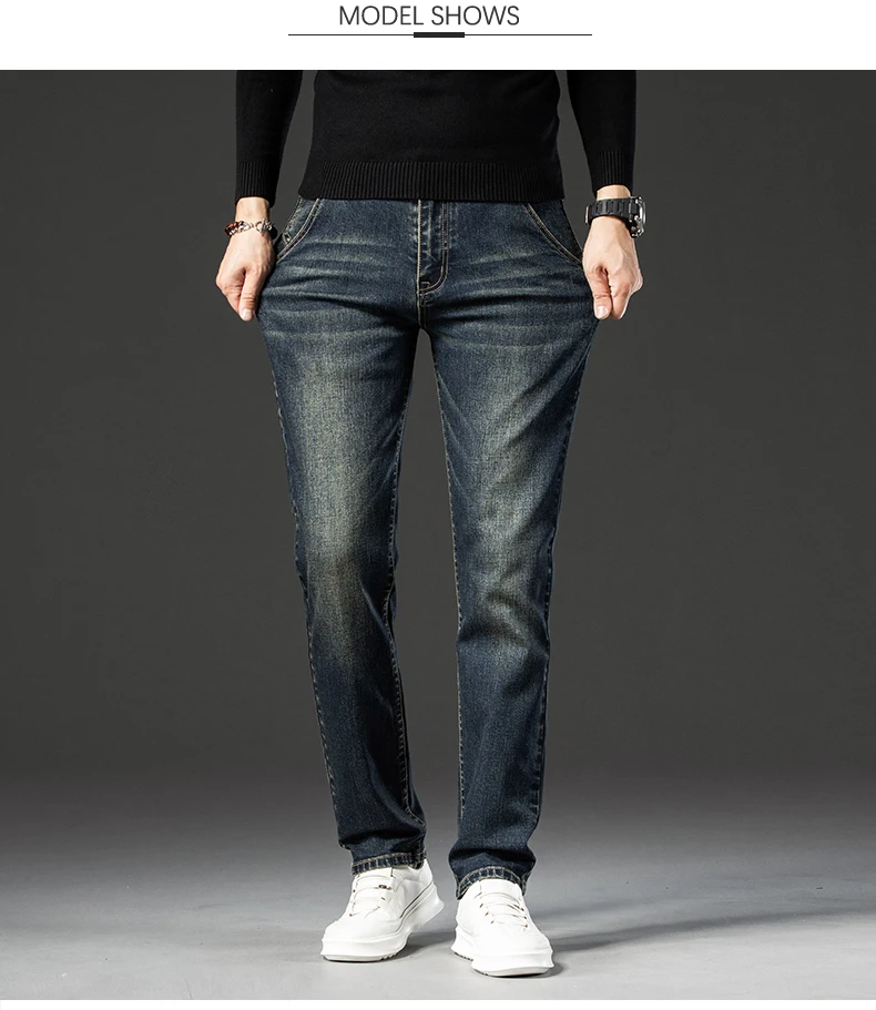 Retro Men’s Stretch Straight Jeans Washed Fashion Distressed Baggy Denim Trousers Male Full Length Classic Brand Pants