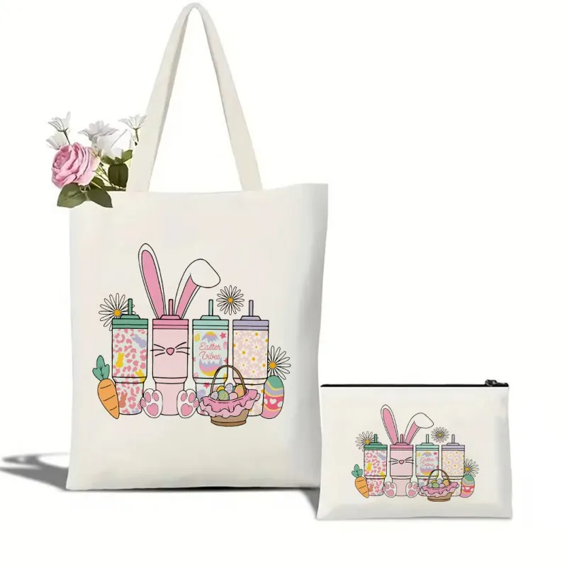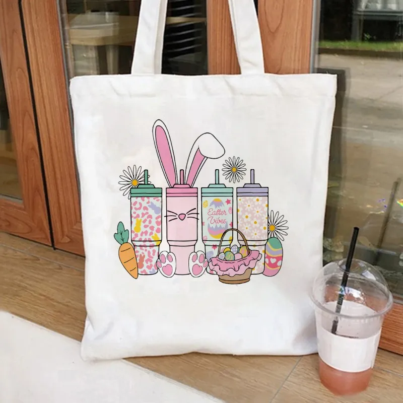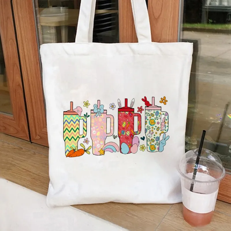 Retro Obsessive Cup Disorder Easter Print Tote Bag Cosmetic Bag Fashion Canva Capacity Travel Shopping Bag Travel Gift for Women