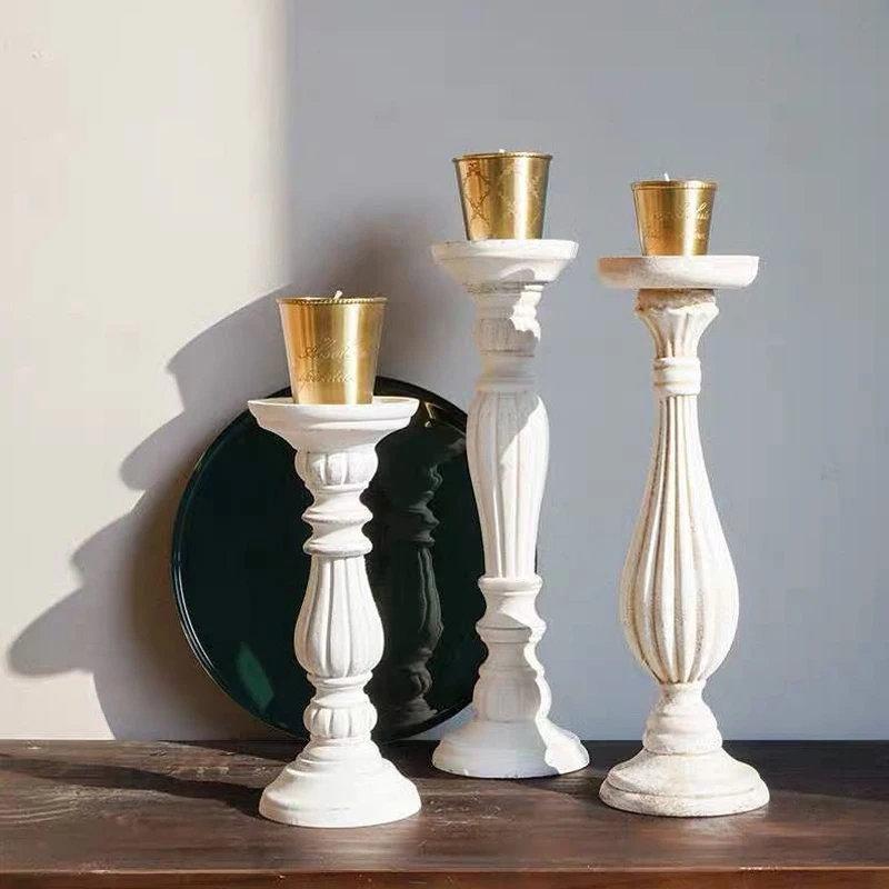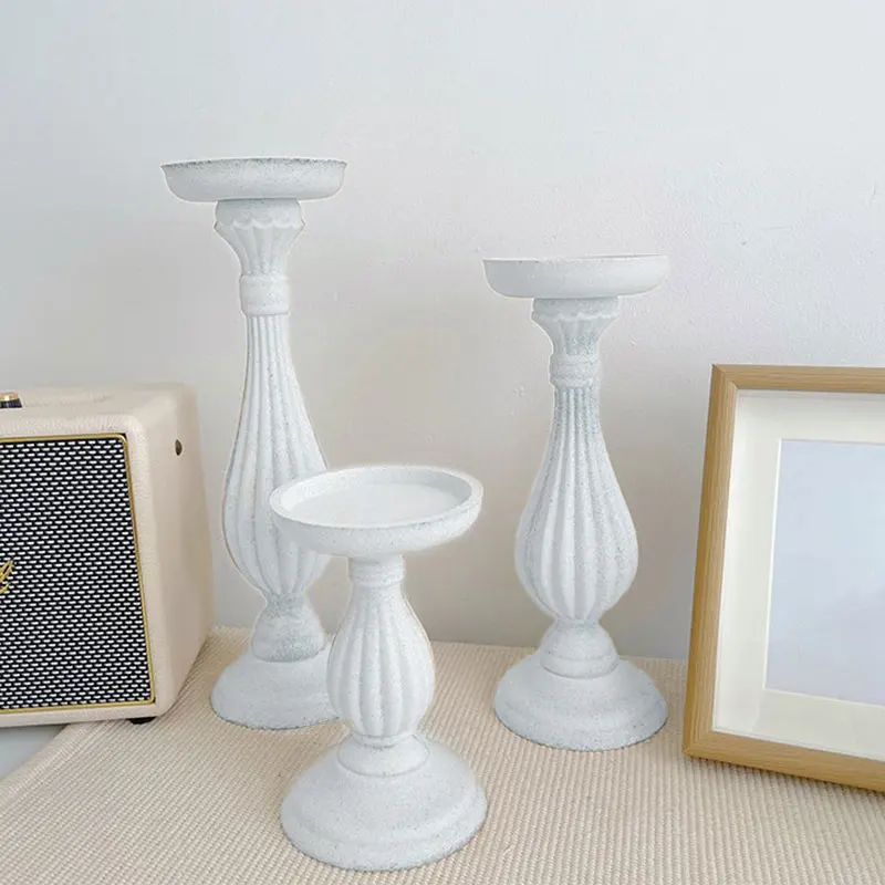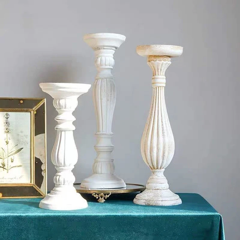 Retro White Wooden Candle Holder Succulent Plant Pot Tray Candlestick Candle Stand Wedding Party Table Centerpieces Home Decor