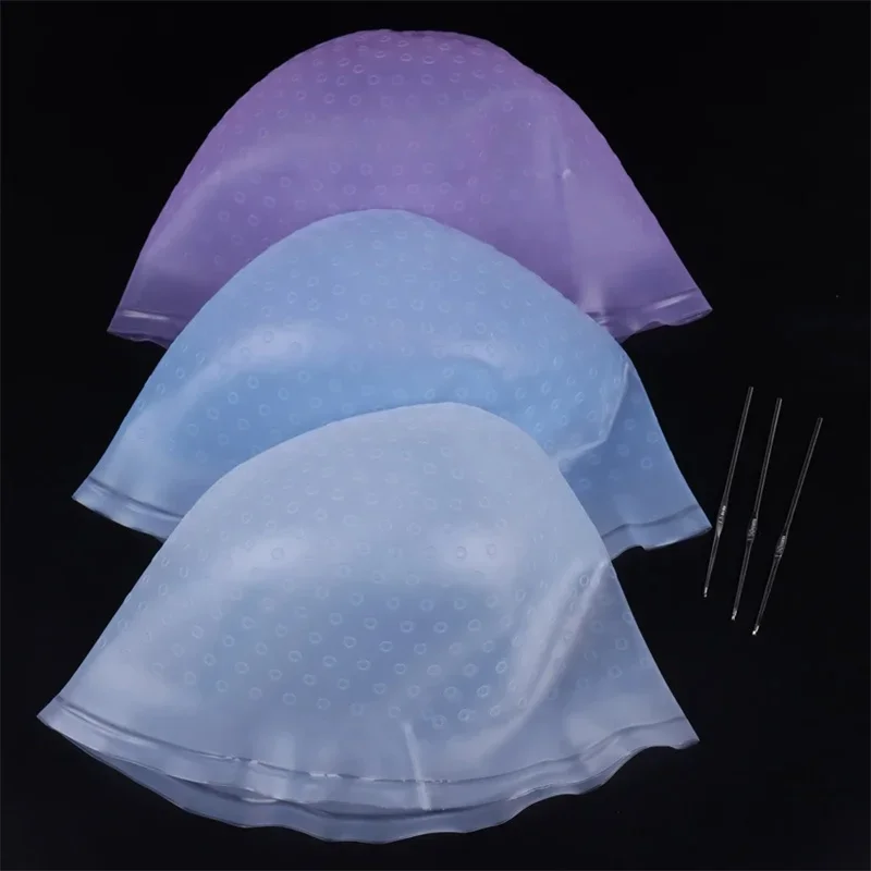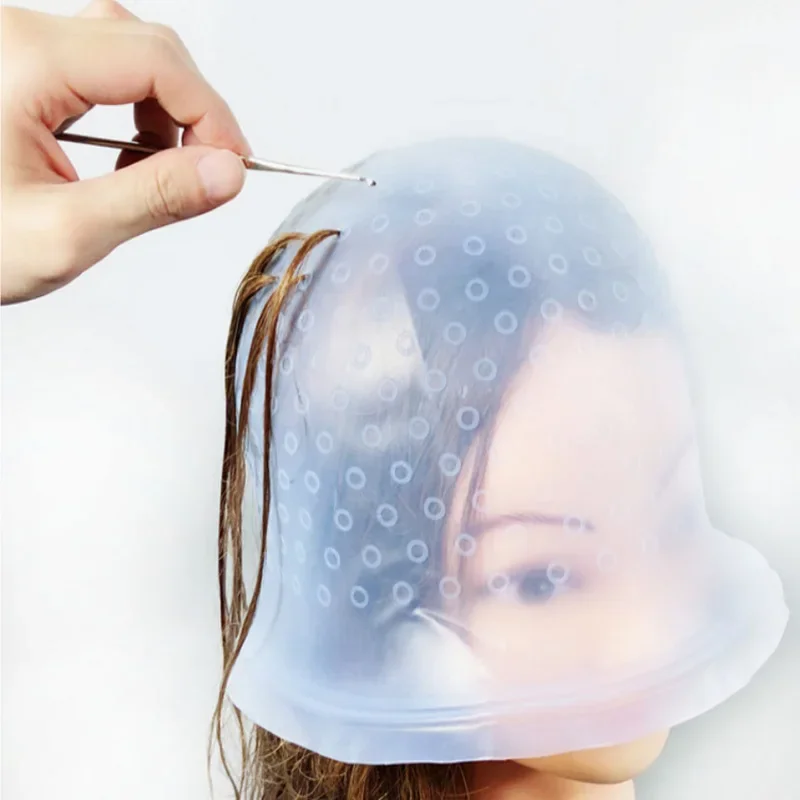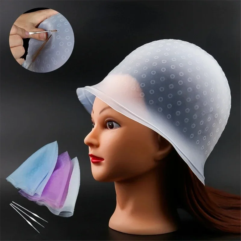 Reusable Hair Colouring Highlighting Dye Caps with Hooks Silicone Hair Dyeing Cap Hook Needle DIY Frosting Dyeing Styling Tools