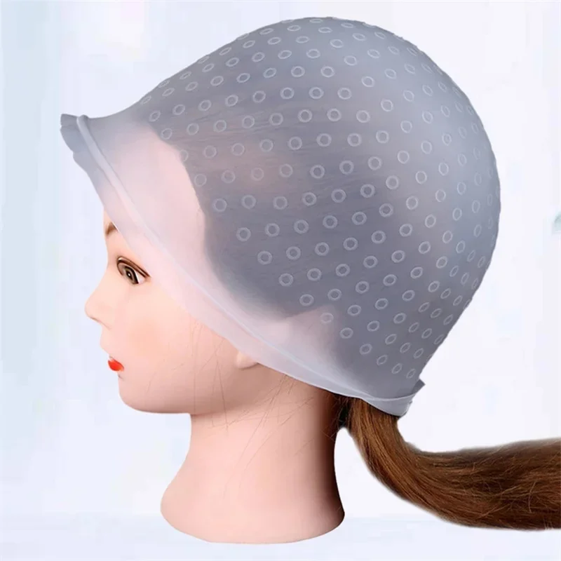 Reusable Hair Colouring Highlighting Dye Cap With Hooks Silicone Hair Dyeing Cap Hook Needle DIY Frosting Dyeing Styling Tools
