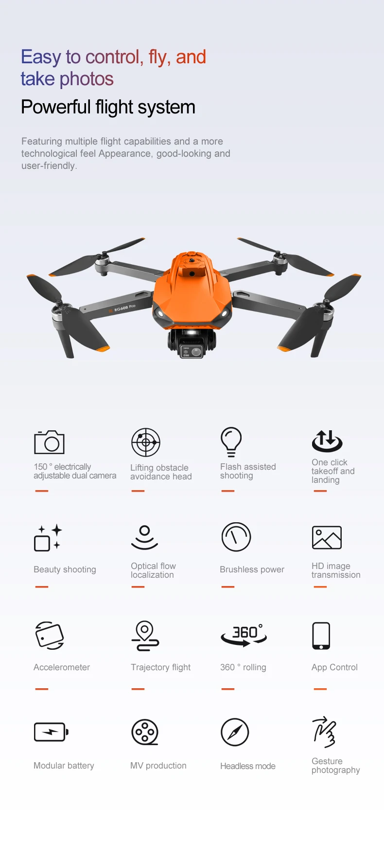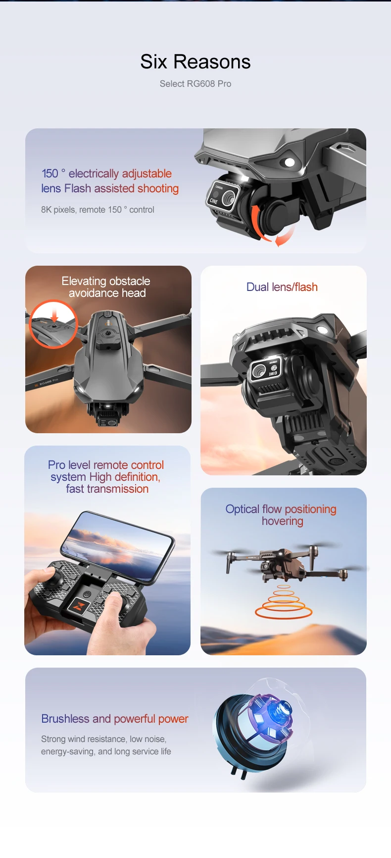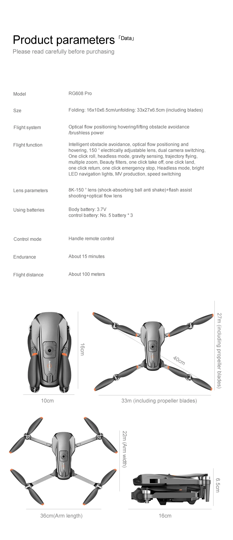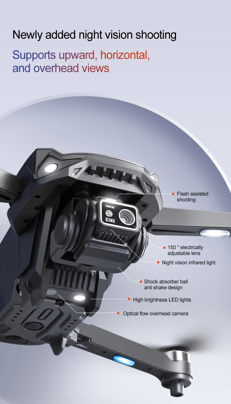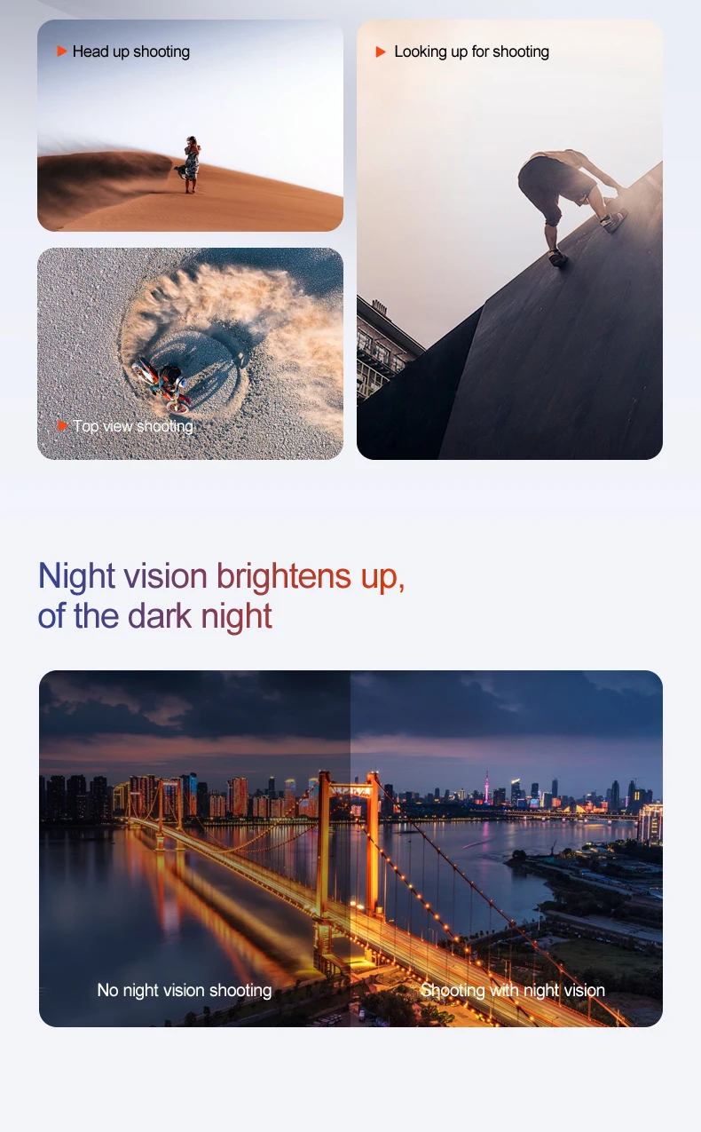 10. Six-axis gyroscope for smoother flight and more convenient control. Functions: Up/down, forward/backward, turn left/right, side flying, headless mode, altitude hold mode, WiFi FPV (dual-camera models feature camera switching), electrically adjustable camera, switchable night vision aerial photography.