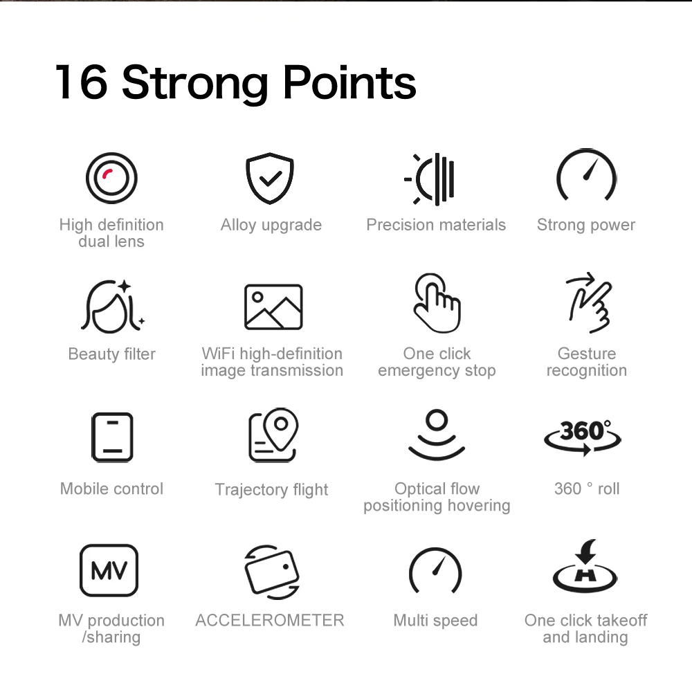 One Click Upldown. Headless Modeoptical Flow Visual Positioning Modewifi Fpv Dual Lens Switching, Lens180 ° Electric Adjustment,Stunt Rolling,Trajectory Flying, One Click Back,Avoiding Obstacles On All Sides