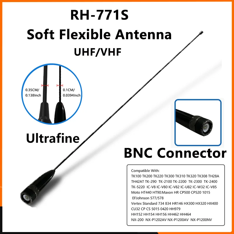 RH771S Soft flexible antenna whip Ultrafine BNC VHF UHF 144/430MHz for TK100 TK200 TK220 TK300 TK310 Walkie Talkie Accessories