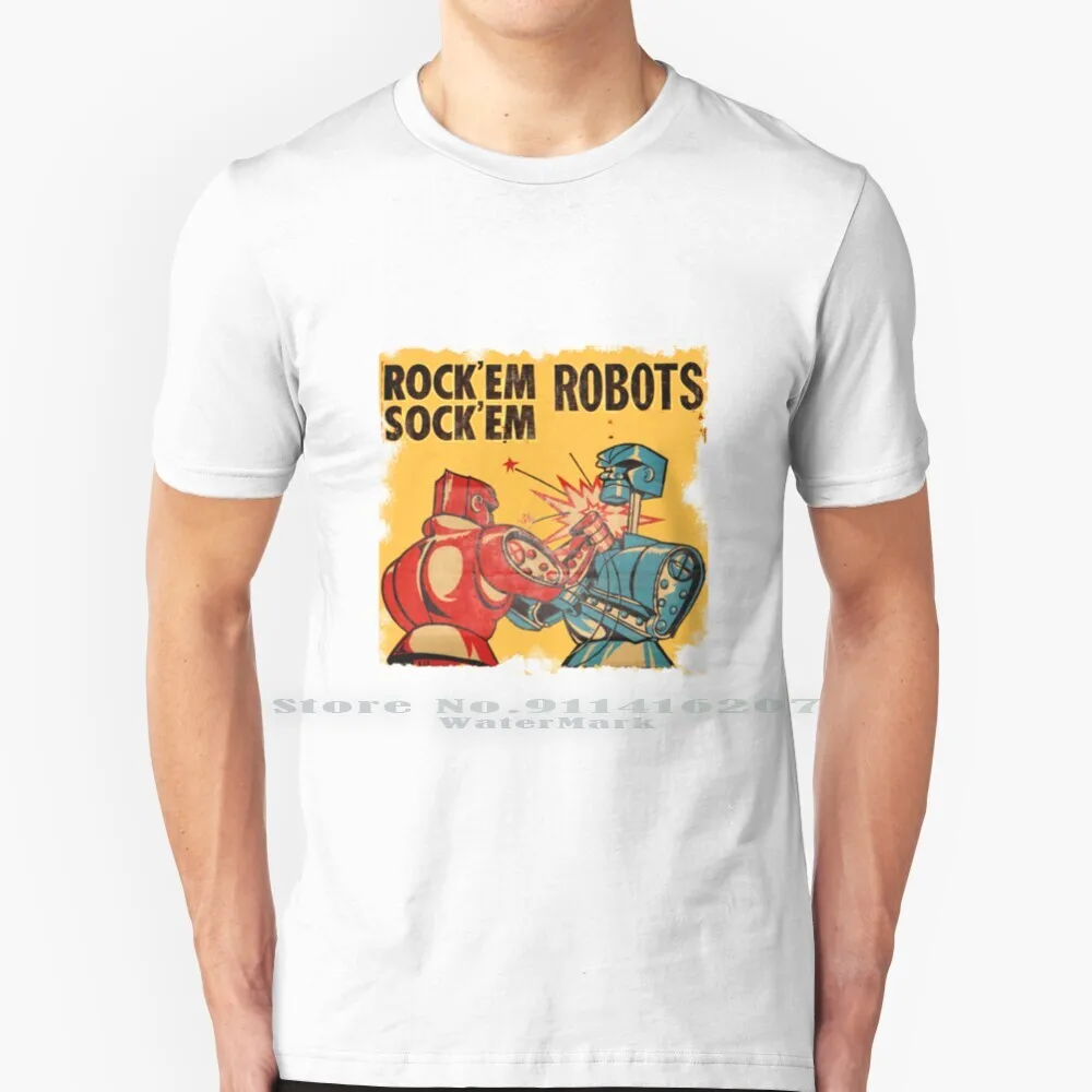 Rock' ; Em Sock' ; Em Robots 100% Cotton T Shirt Rockem Sockem Robots Toys Retro Vintage Games Kids Fighting Boxing Tee