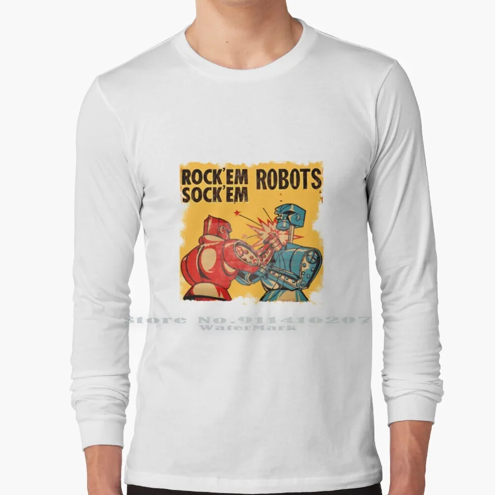 Rock' ; Em Sock' ; Em Robots 100% Cotton Long Sleeve T Shirt Rockem Sockem Robots Toys Retro Vintage Games Kids Fighting