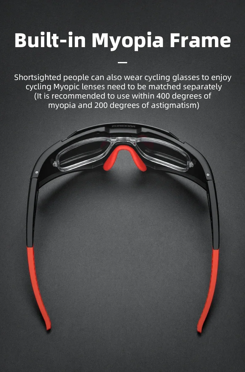 ROCKBROS Men Women Eyewear Goggle Photochromic Cycling Glasses Polarized Adjustable Nose Support Myopia Frame Sports Sunglasses