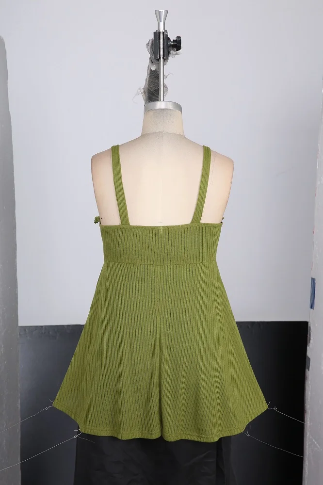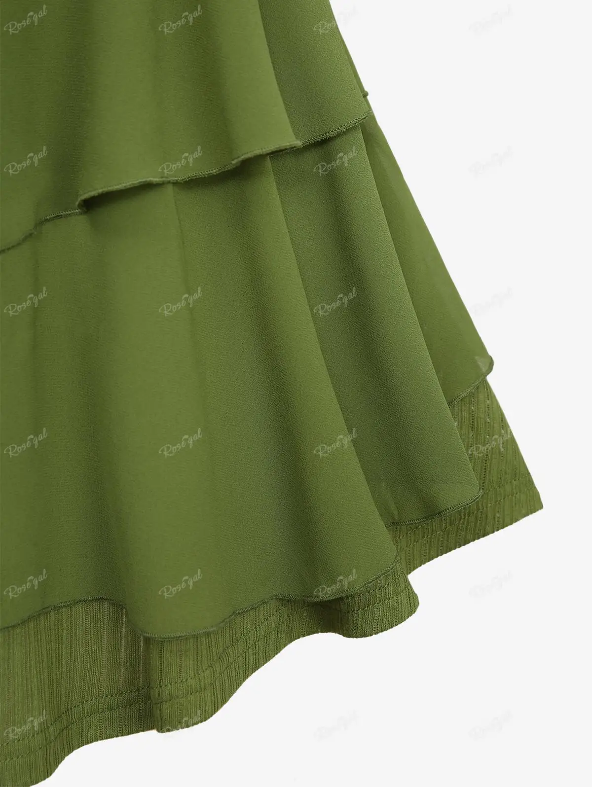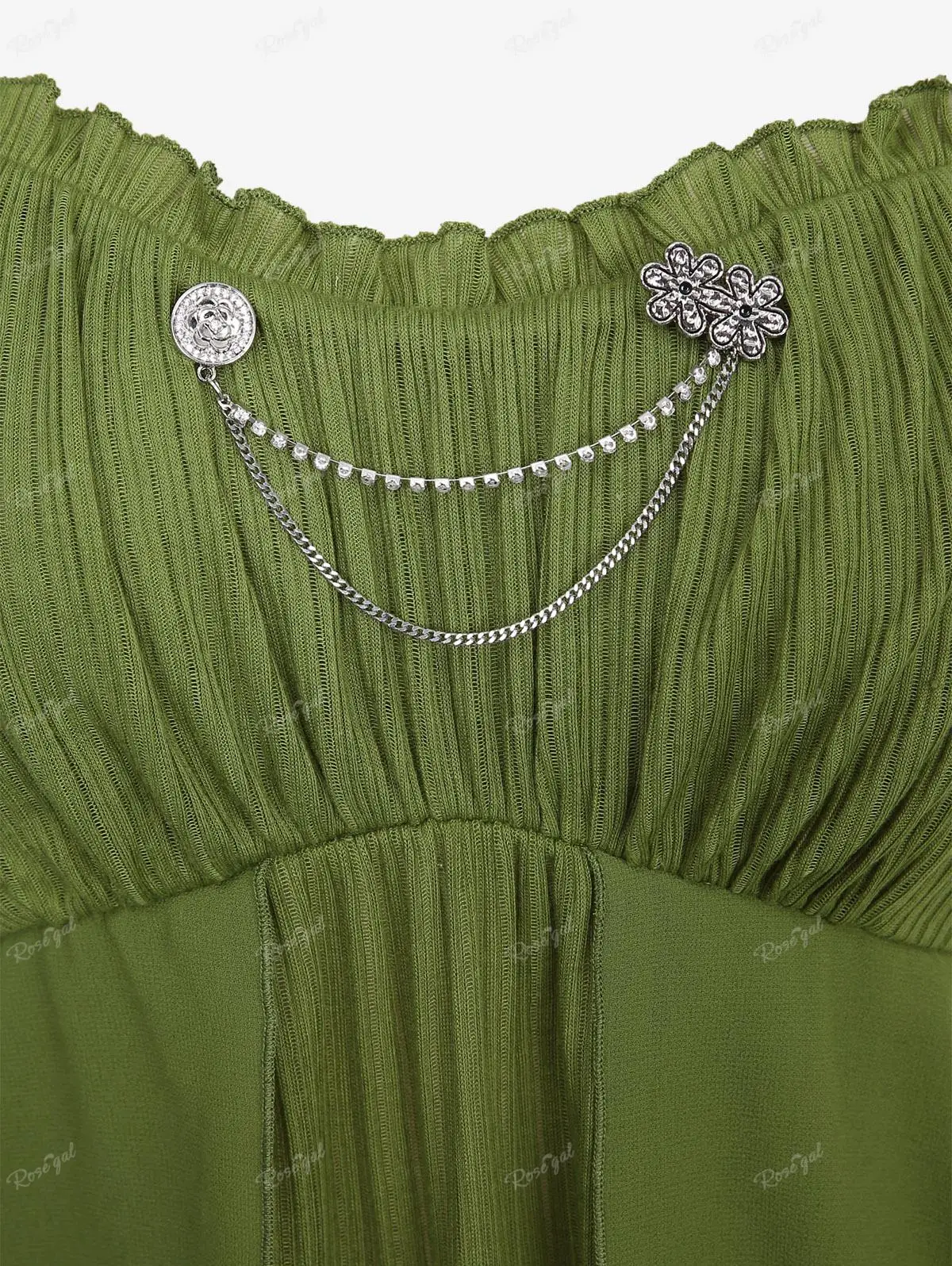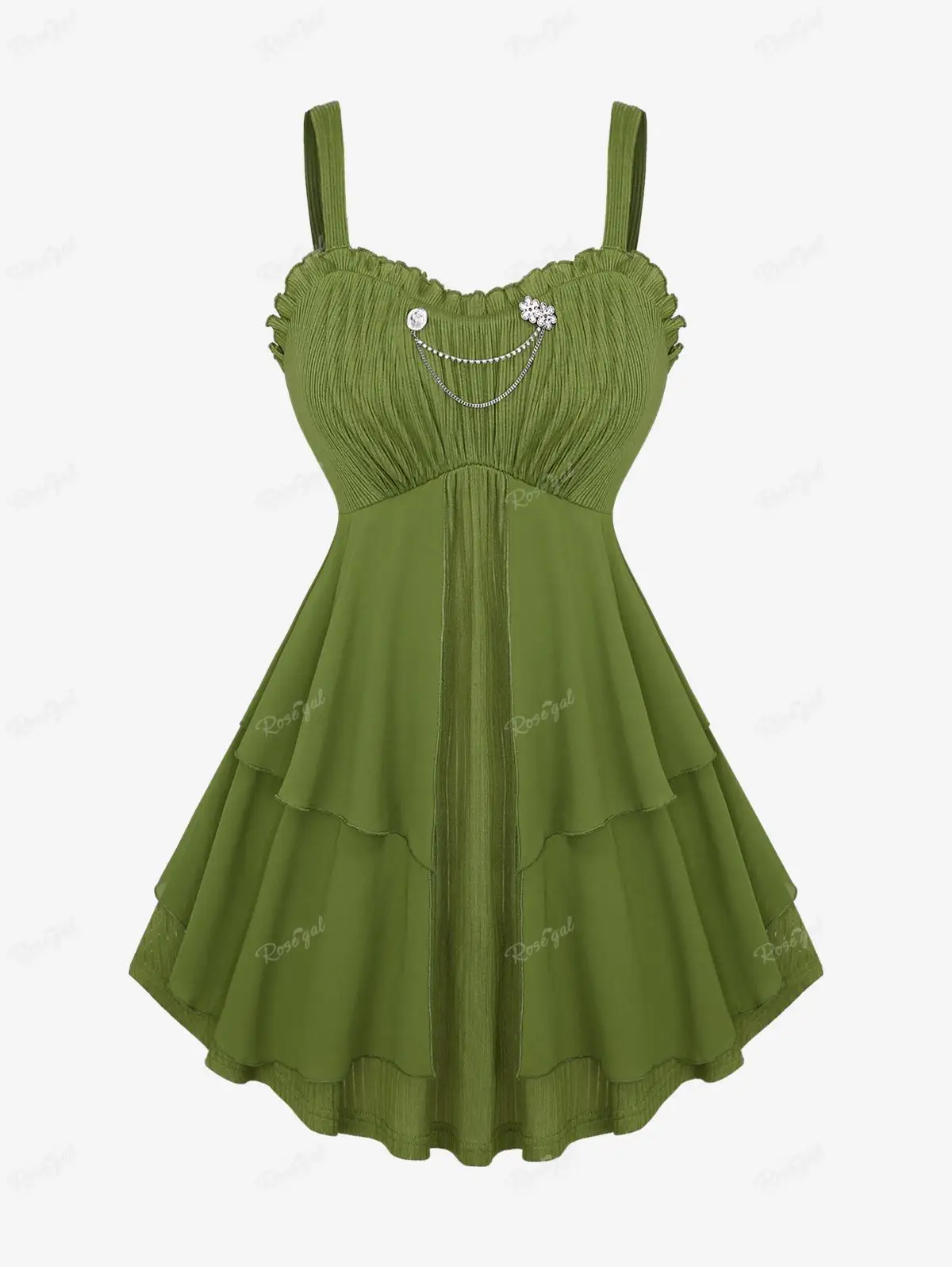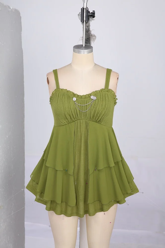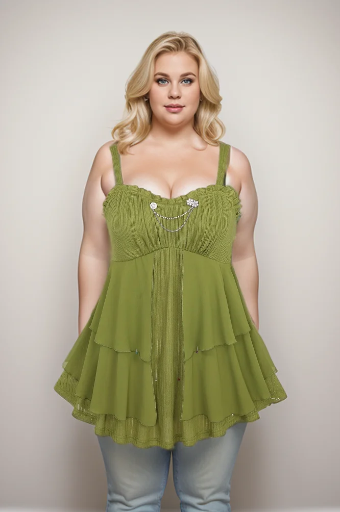 ROSEGAL Plus Size Women’s Tank Top Green Floral Chain Decor Ruched Ruffles Layered Chiffon Vest Summer Backless Tops