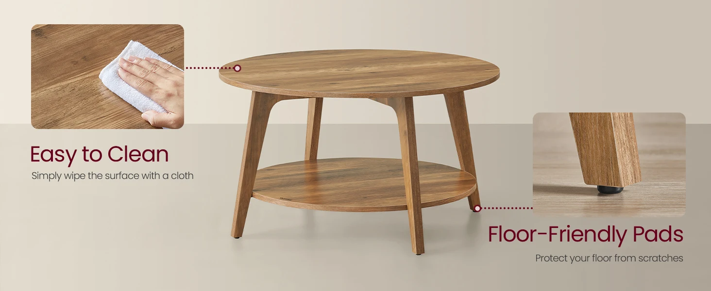 Round Coffee Table, 2 Tier Coffee Table with Storage, for Living Room, 31.5 x 17.7 Inches, Easy to Assemble, Honey Brown