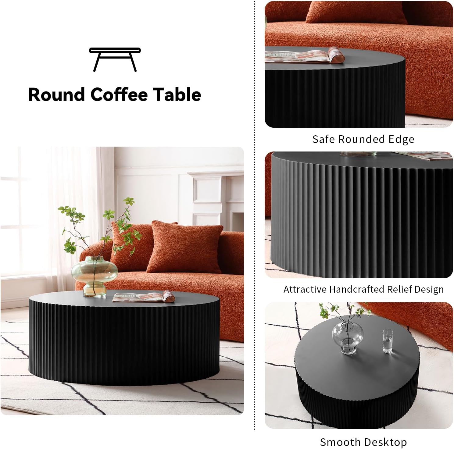 Round Coffee Table, 35.43″” Modern Minimalist Center Table Tea Table With Relief Design For Living Room Apartment Small Space