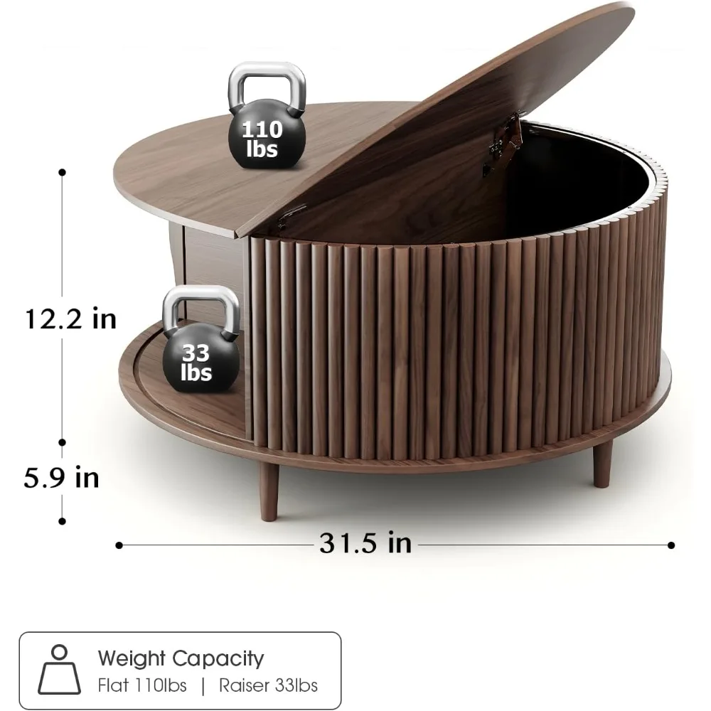 - 【Stylish and Practical】The round coffee table features lift top design,allowing you to work,write or dine comfortably on the sofa.Its mid-century modern style adds a retro feel to any space