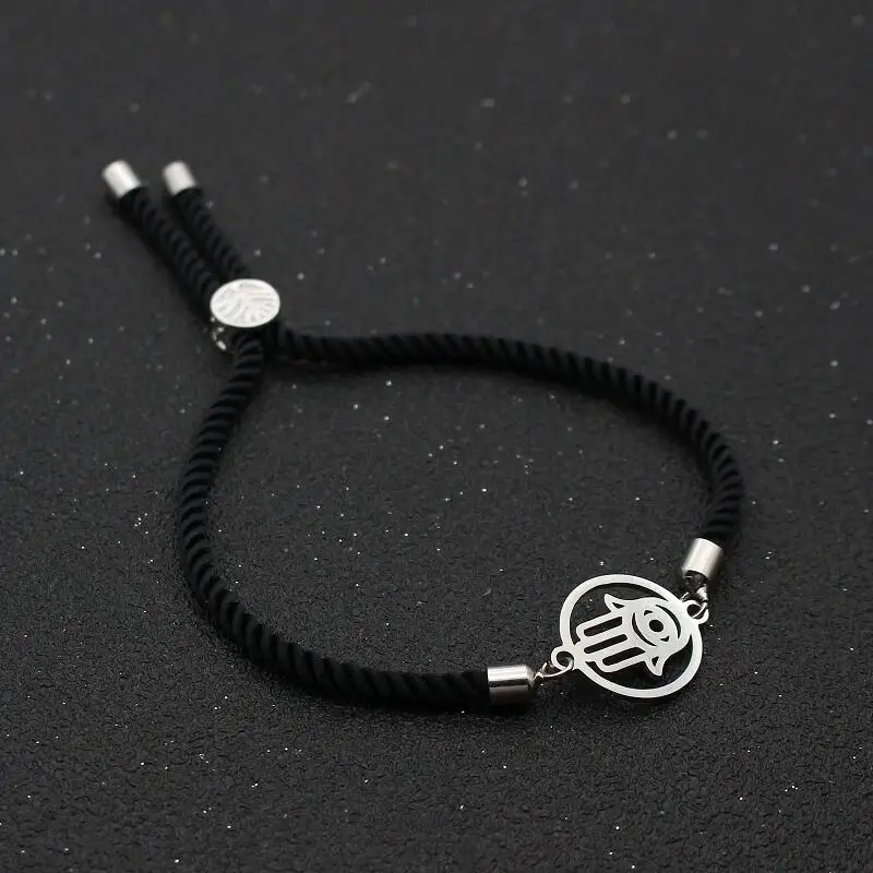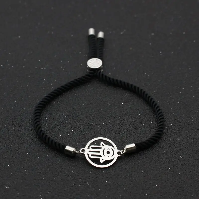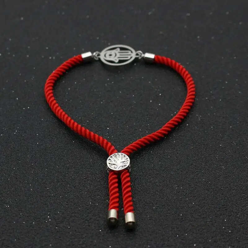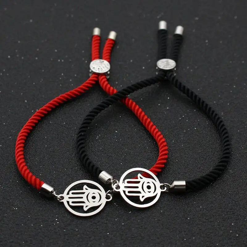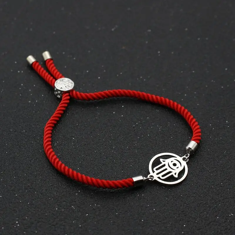 Round Hollow out Stainless Steel Fatima Hand Bracelet Red Thread Rope Charm Bracelets & Bangles For Men Women Lucky Jewelry Gift