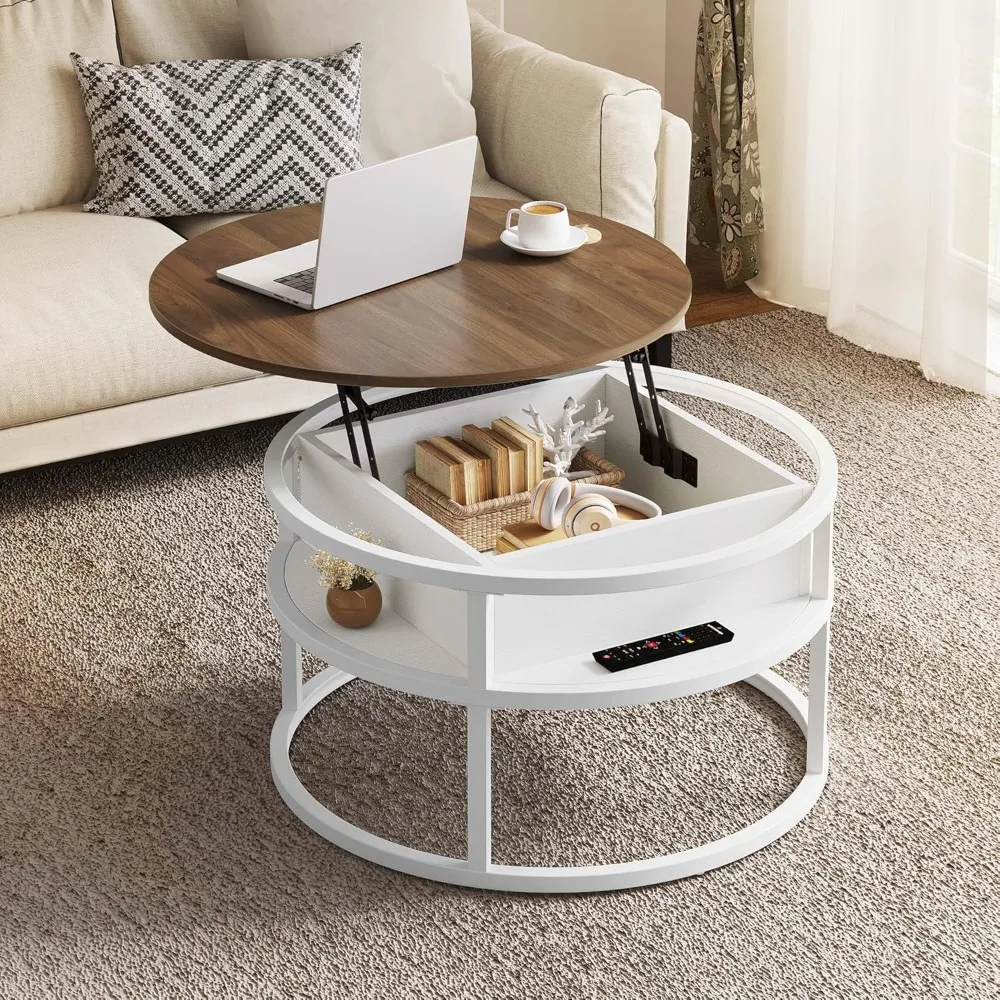 Round Lift Top Coffee Table, Coffee Tables for Living Room with Hidden Storage Compartment, Modern Coffee Table with Storage