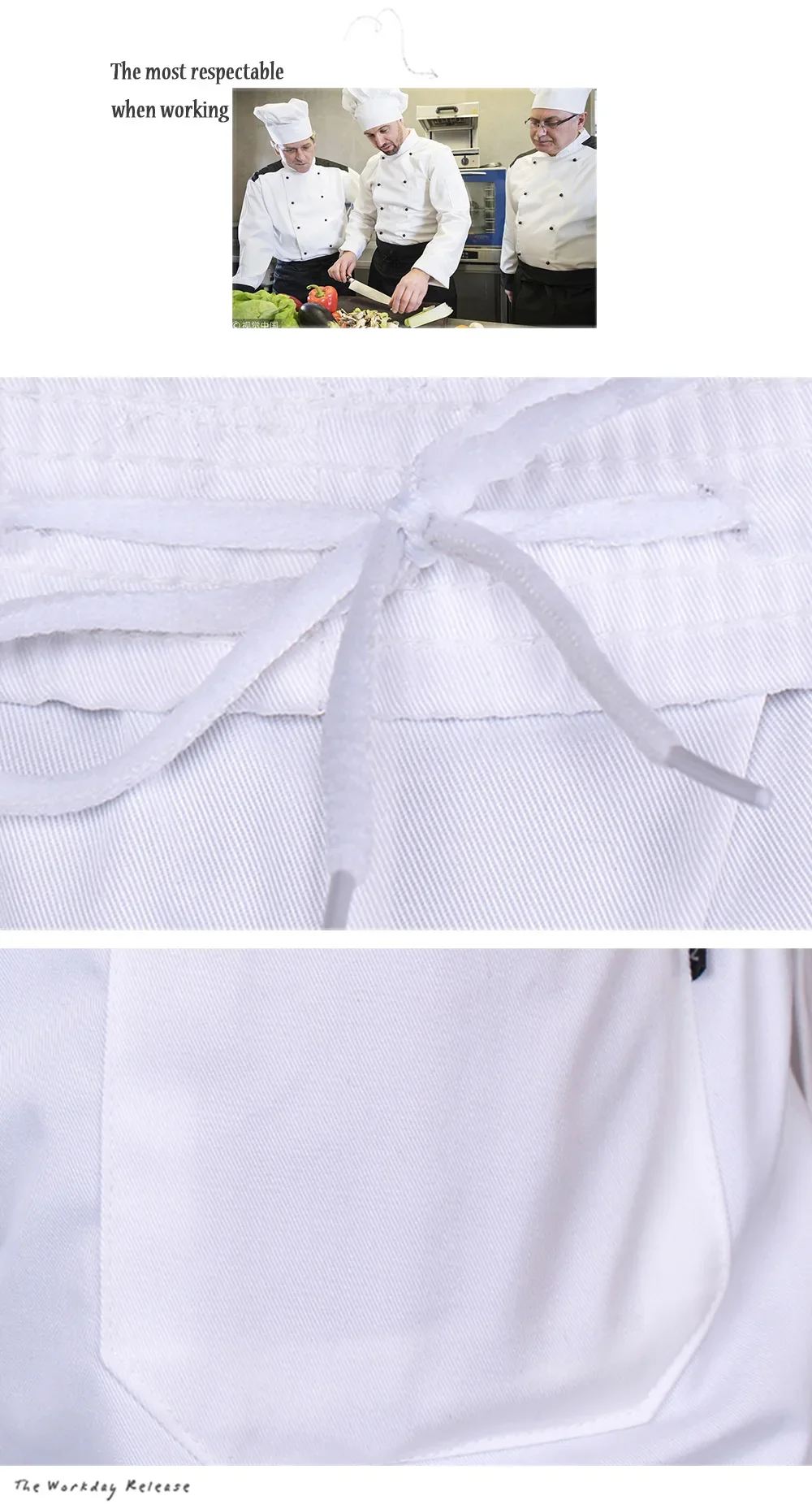 White Chef Jacket long Sleeve Head Chef Uniform Restaurant Hotel Kitchen Cooking Clothes Catering Foodservice Chef Shirt Apron