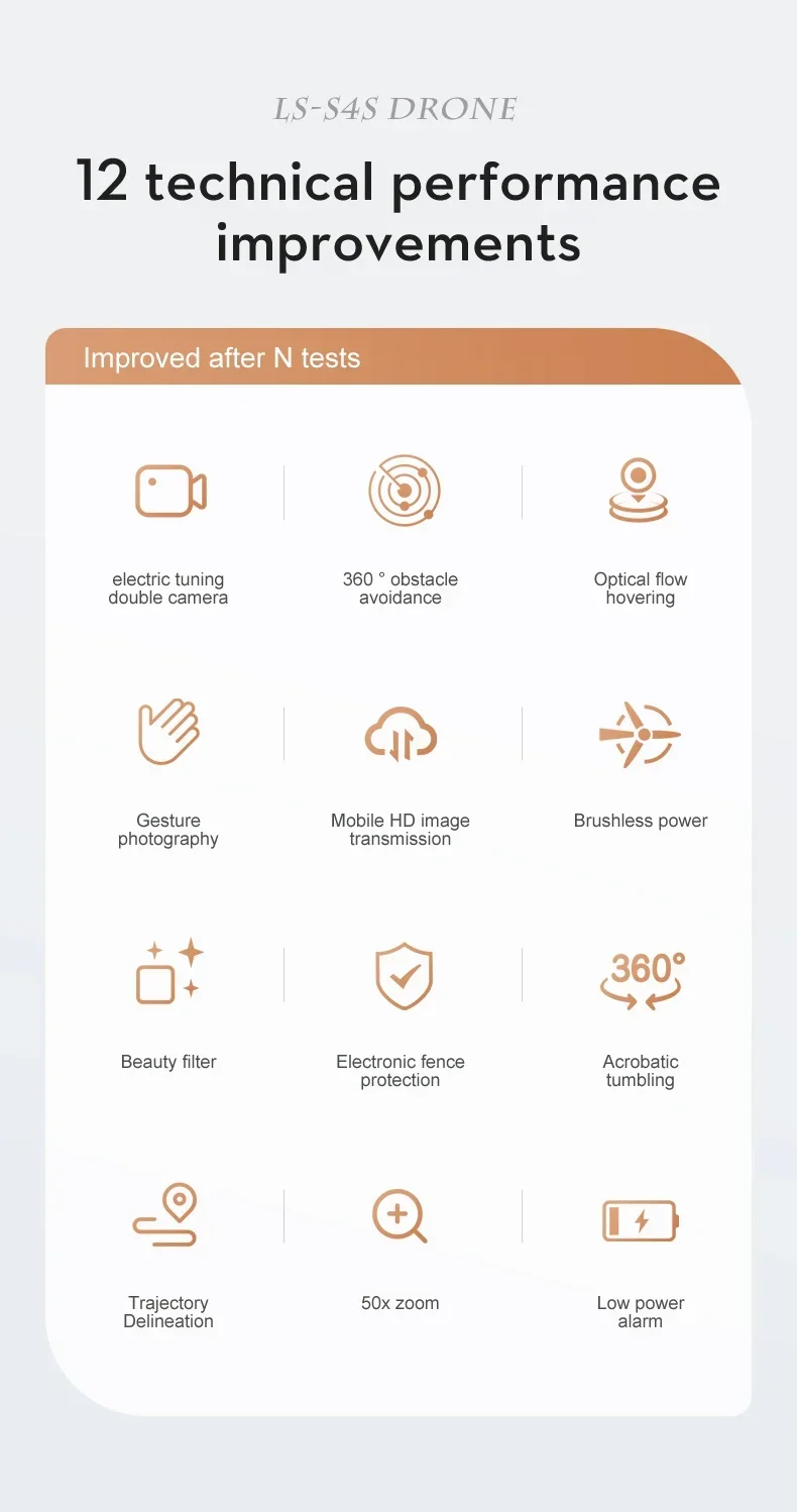 5. Gesture camera, optical flow positioning, brushless motor, super long battery life, obstacle avoidance gimbal components, no collision to stop when encountering obstacles.