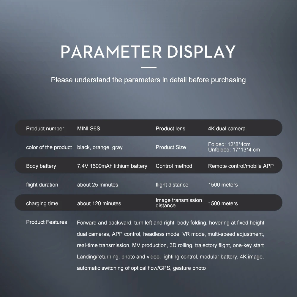 5. Intelligent following, flying around, palm control, map real-time positioning, Drone, out of control map, route planning, APP mobile phone control, one key return, headless mode, rise and fall, forward and backward, left and right side flight, automatic switching optical flow / GPS