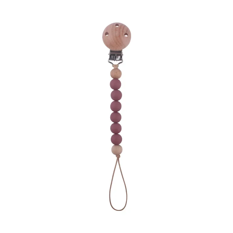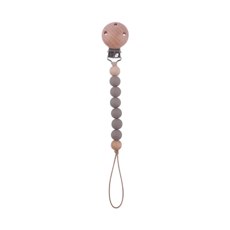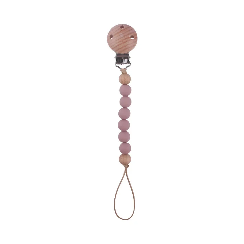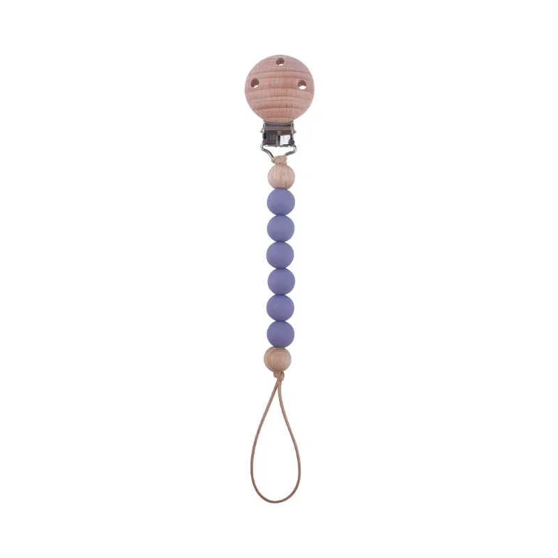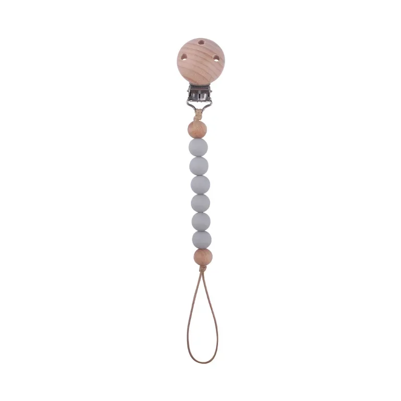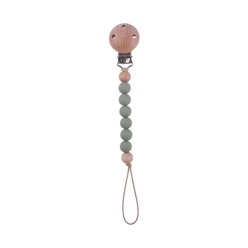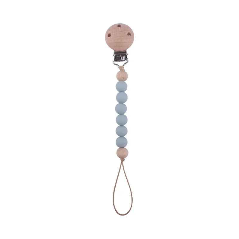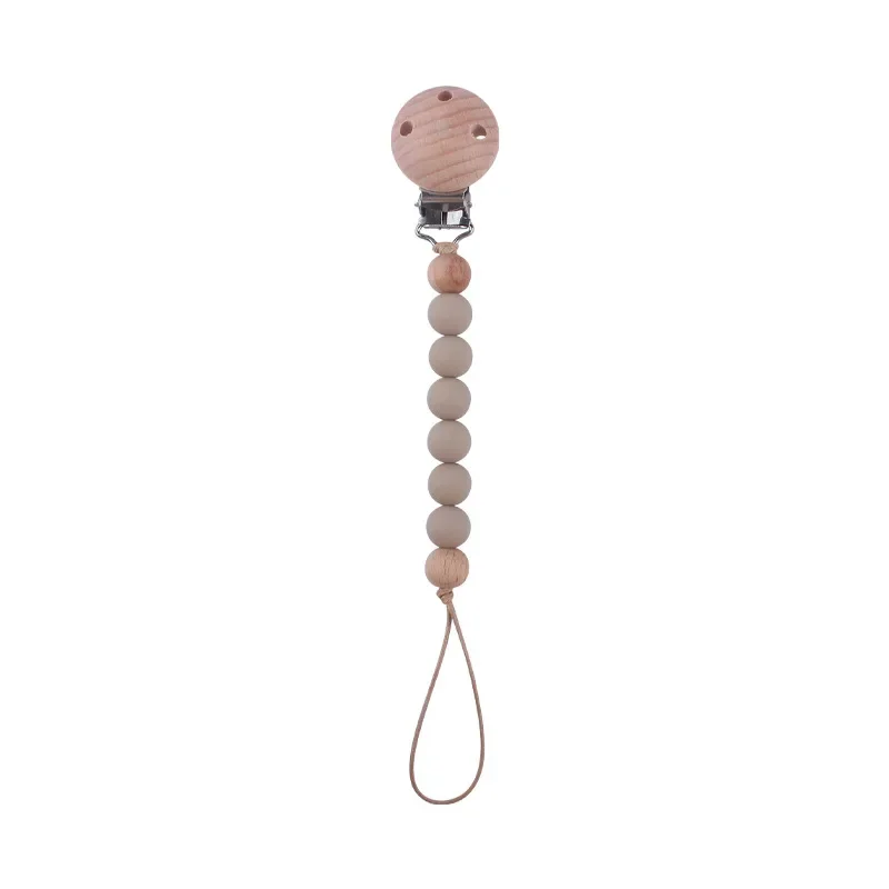 Safety Wooden Baby Infant Toddler Dummy Pacifier Silicone Soother Nipple Clip Chain Holder Strap for Baby Chew Teether Teething