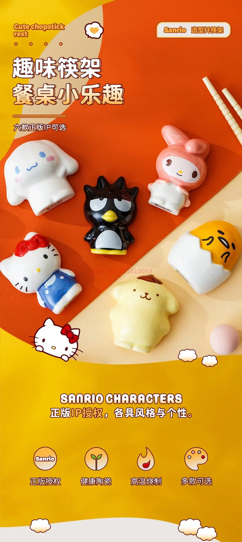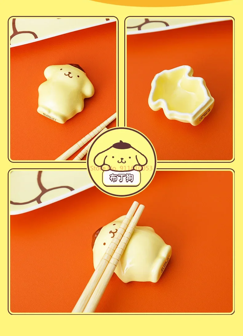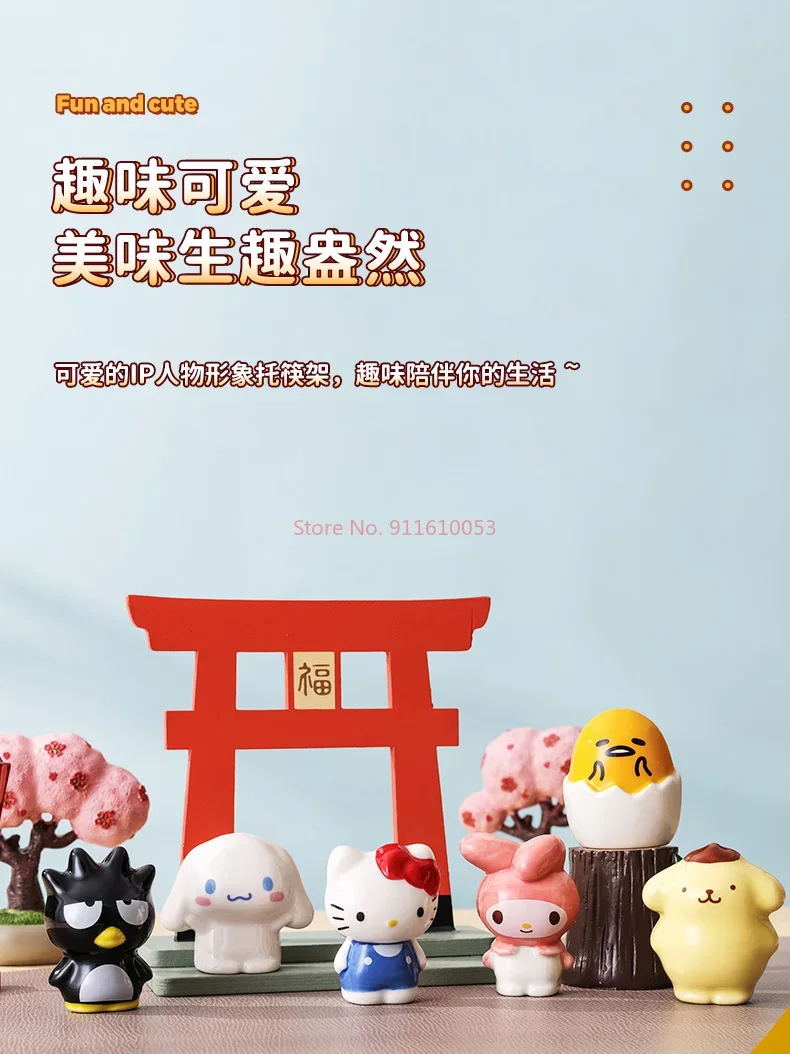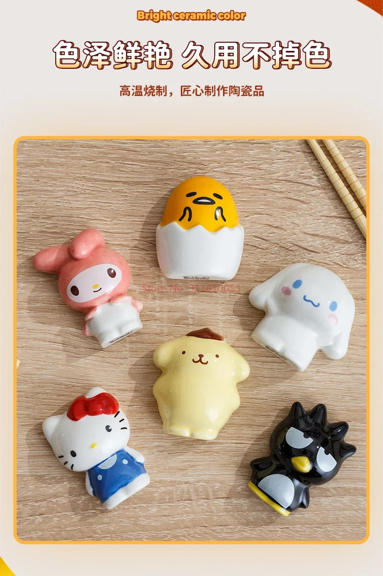 Sanrio Ceramics Chopstick Holder Hello Kitty Anime Pompom Purin Bad Badtz-maru Gudetama Desk Pen Makeup Brush Holder Figure Gift