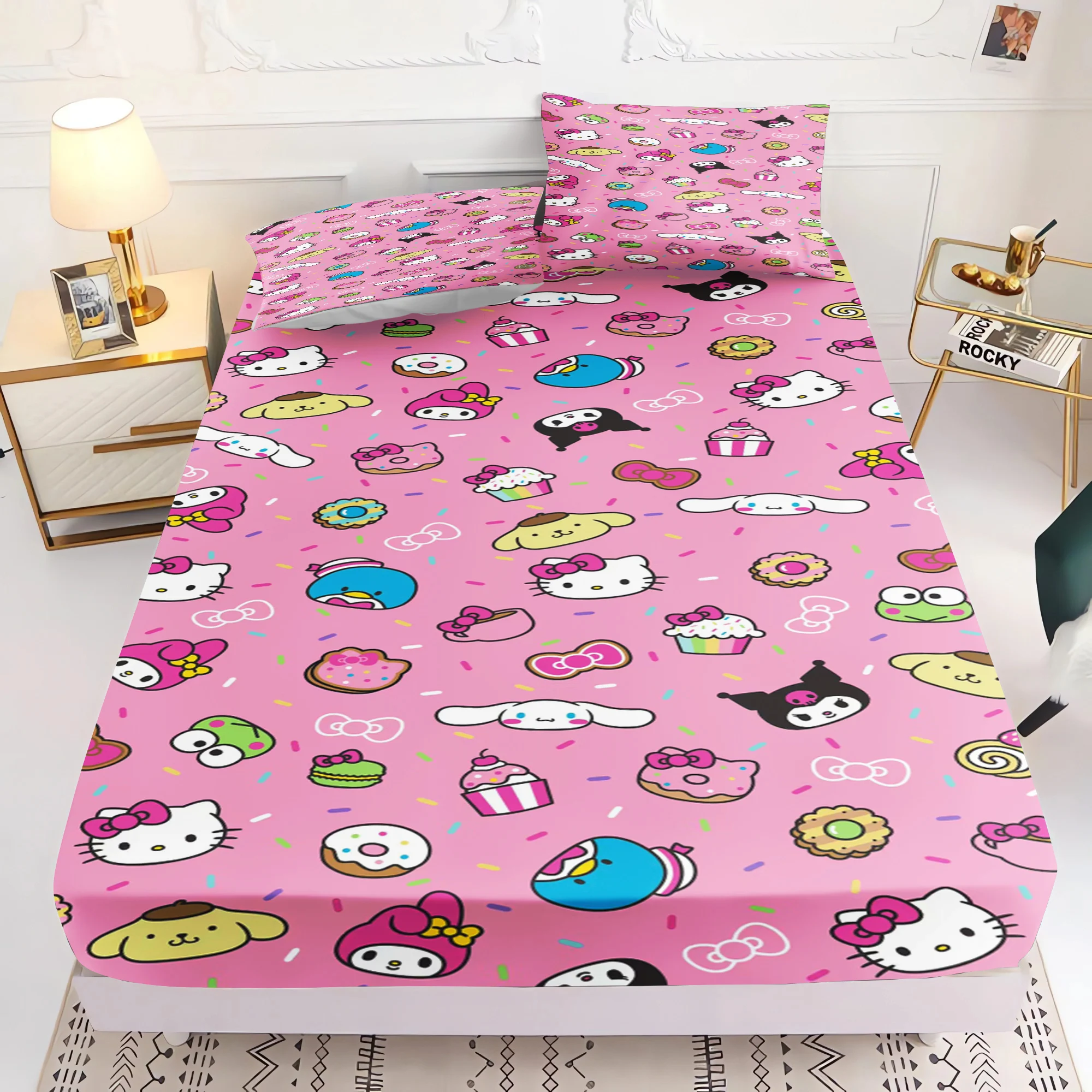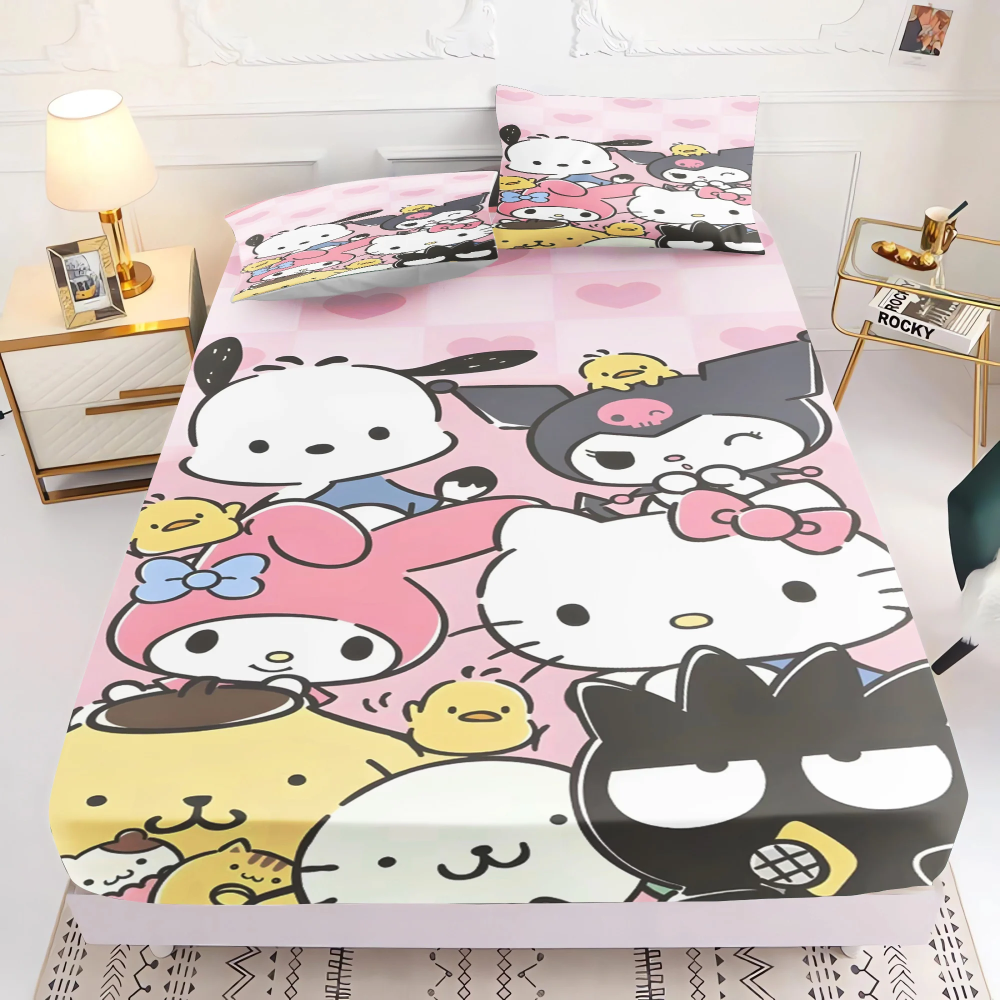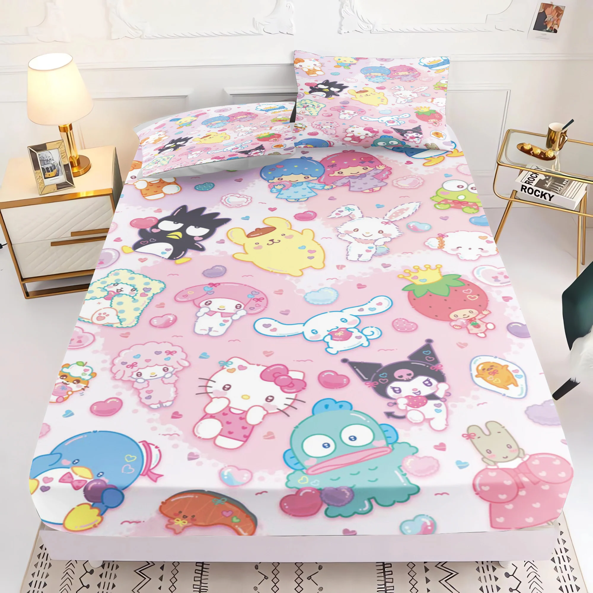 Sanrio Koulomi Home Decor 100% Polyester 3D Children’S Bedding Set With Pillowcase Fitted Sheet 2/3pcs Anime Printed
