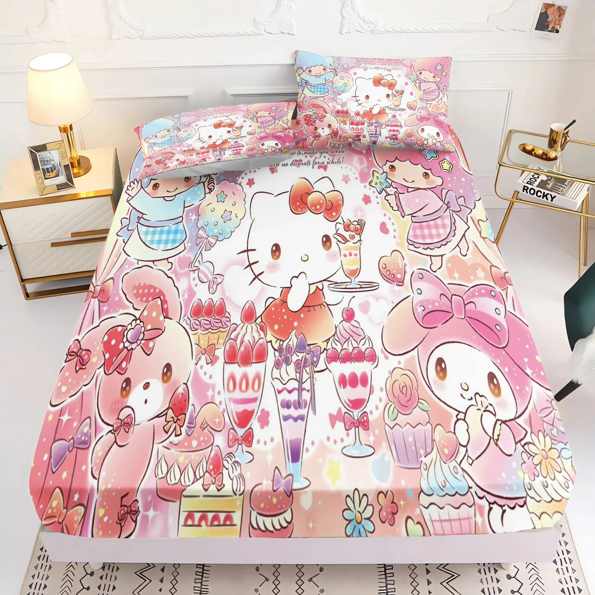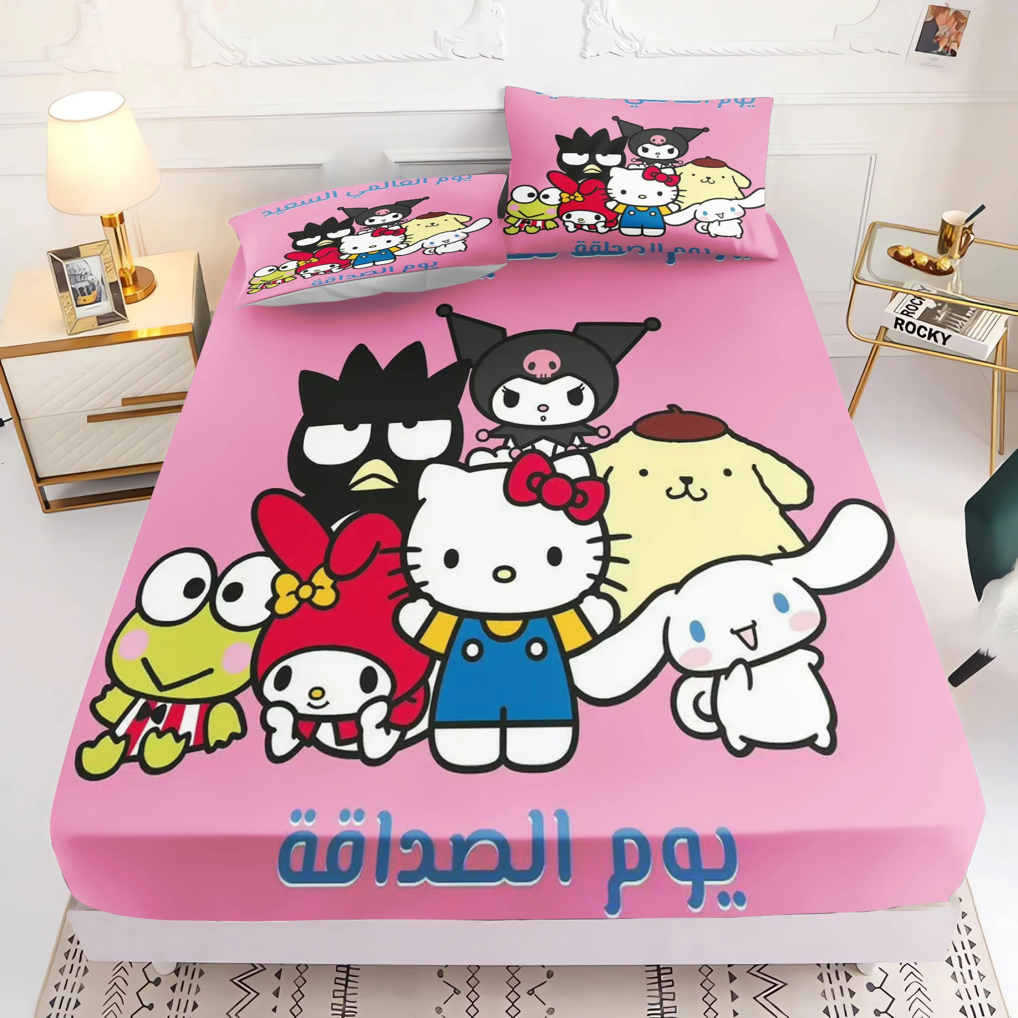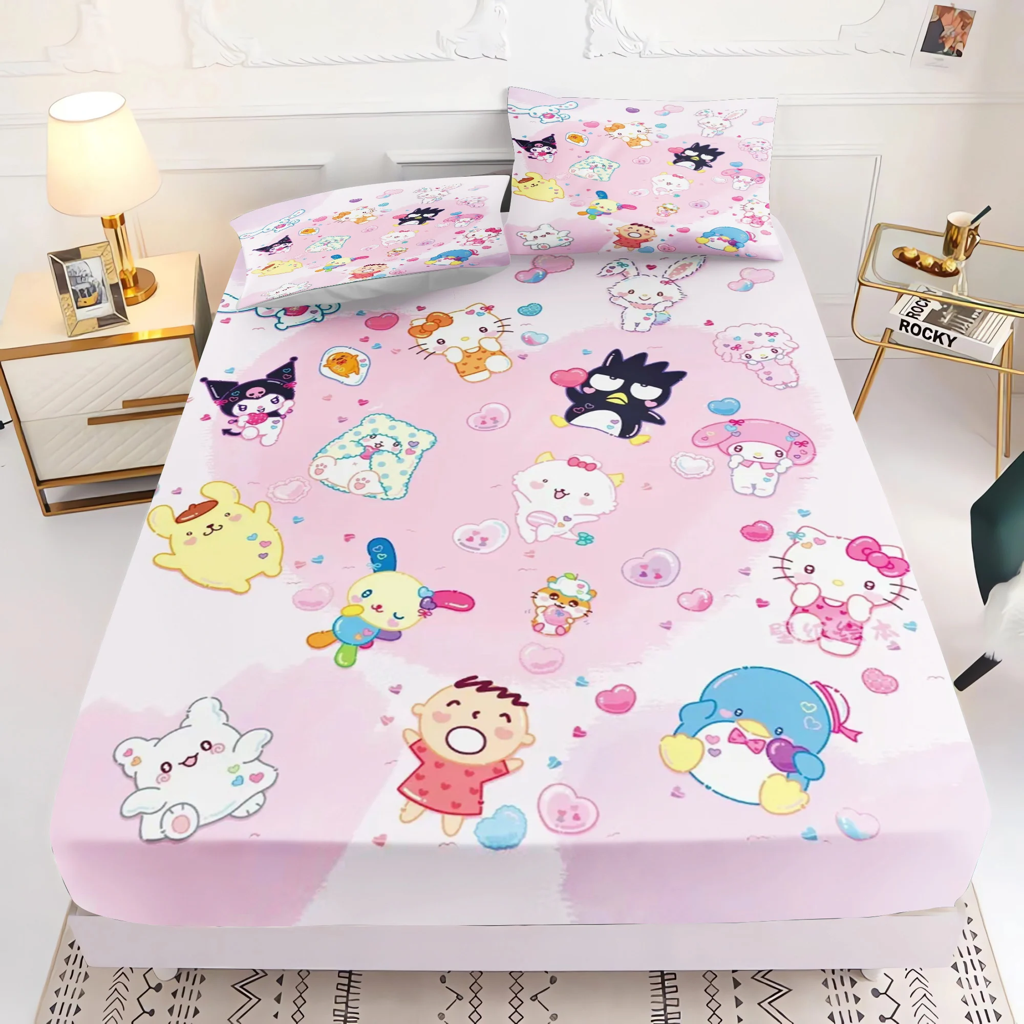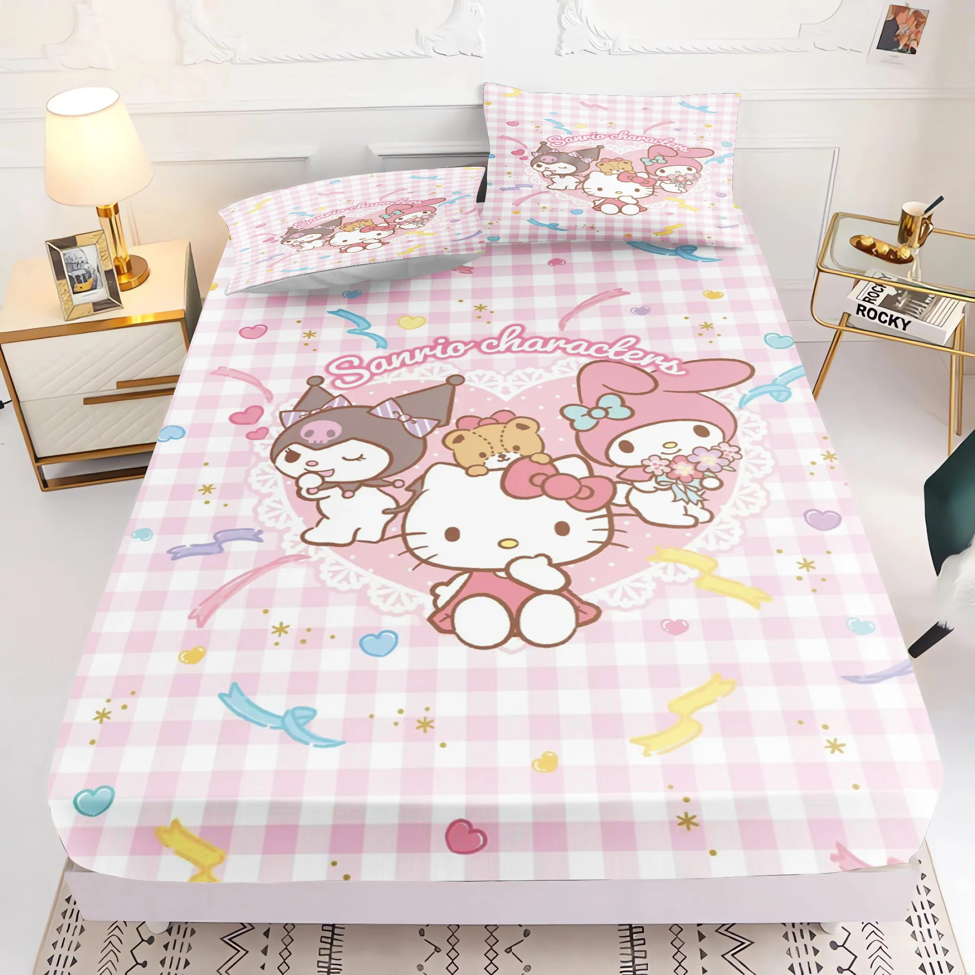 Sanrio Koulomi Home Decor 100% Polyester 3D Children’S Bedding Set With Pillowcase Fitted Sheet 2/3pcs Anime Printed