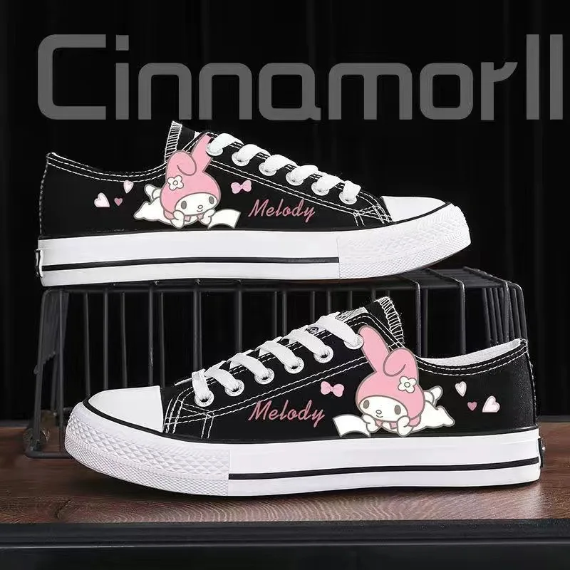 Sanrio My Melody Shoes Cinnamoroll Kuromi Low Top Canvas Shoes Women Casual Couple Shoes 2024 Spring/Summer New Lolita Sneakers