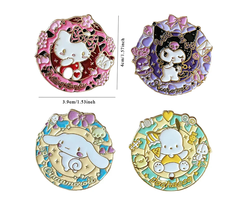 Sanrio Pins Hello Kitty Kuromi Badges Brooch Cinnamoroll Cartoon Metal Lapel Pins for Student Backpack Jewelry Accessories Gift