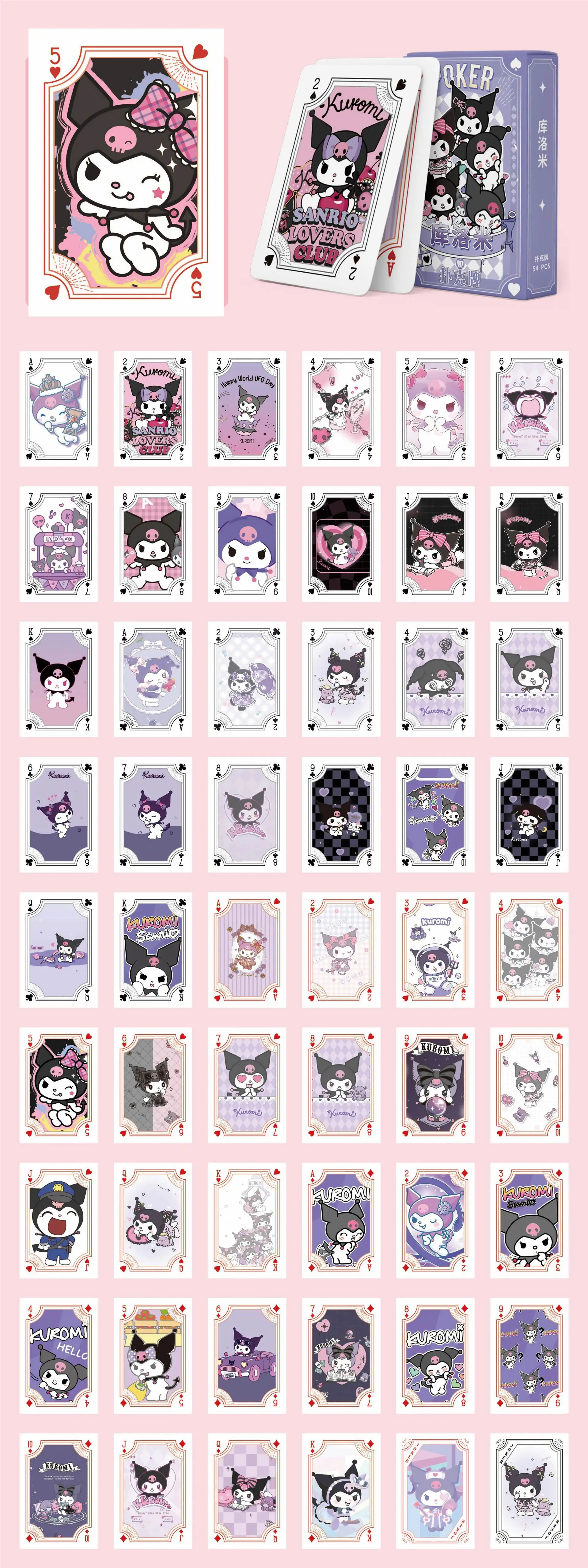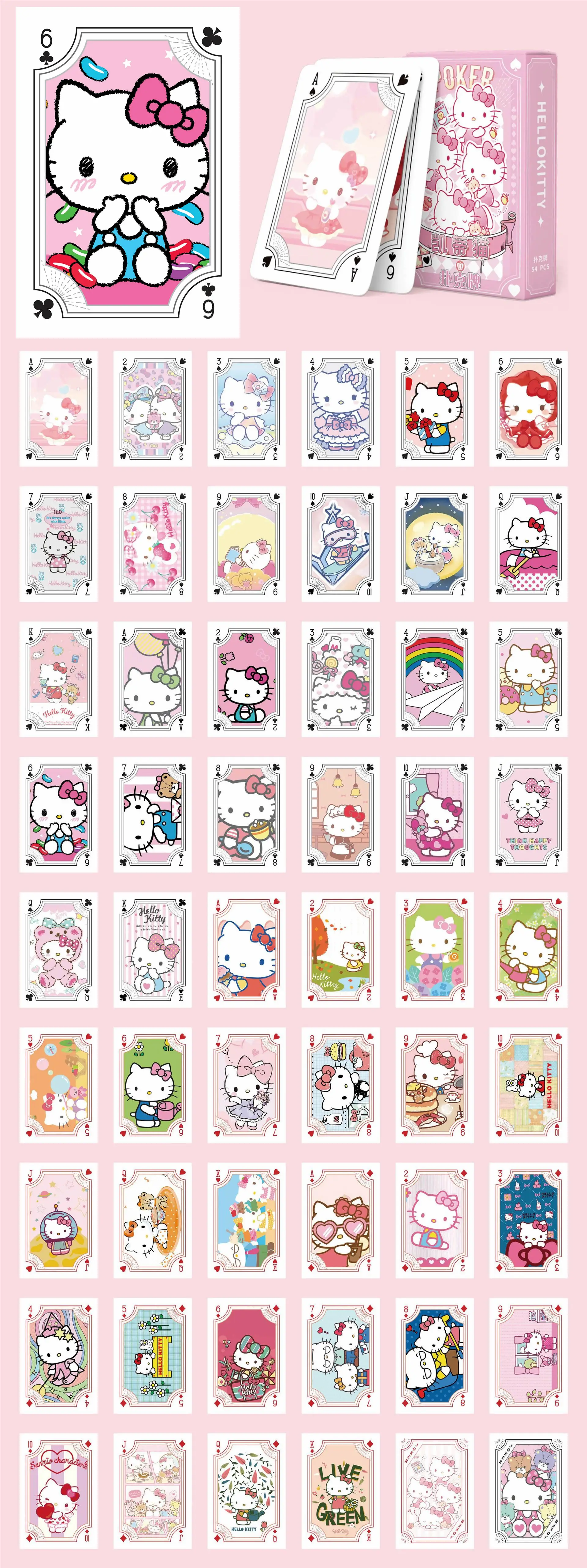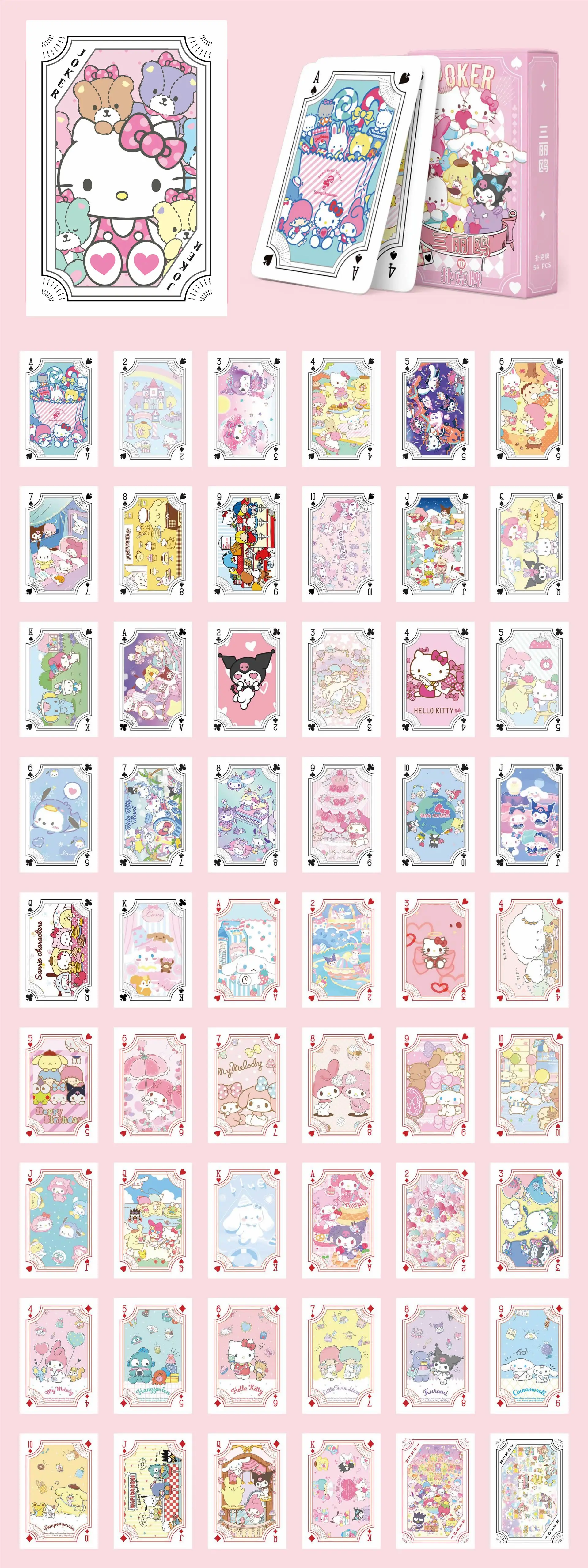 Sanrio Poker Kawaii Cartoon Kuromi Hello Kitty Cinnamoroll Melody Kids Playing Hobby Collectibles Card Games Toy Deck Collection