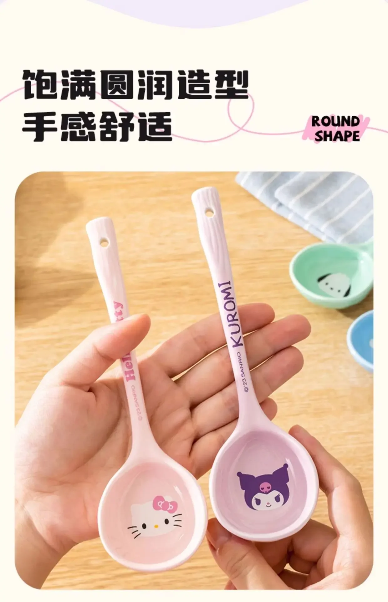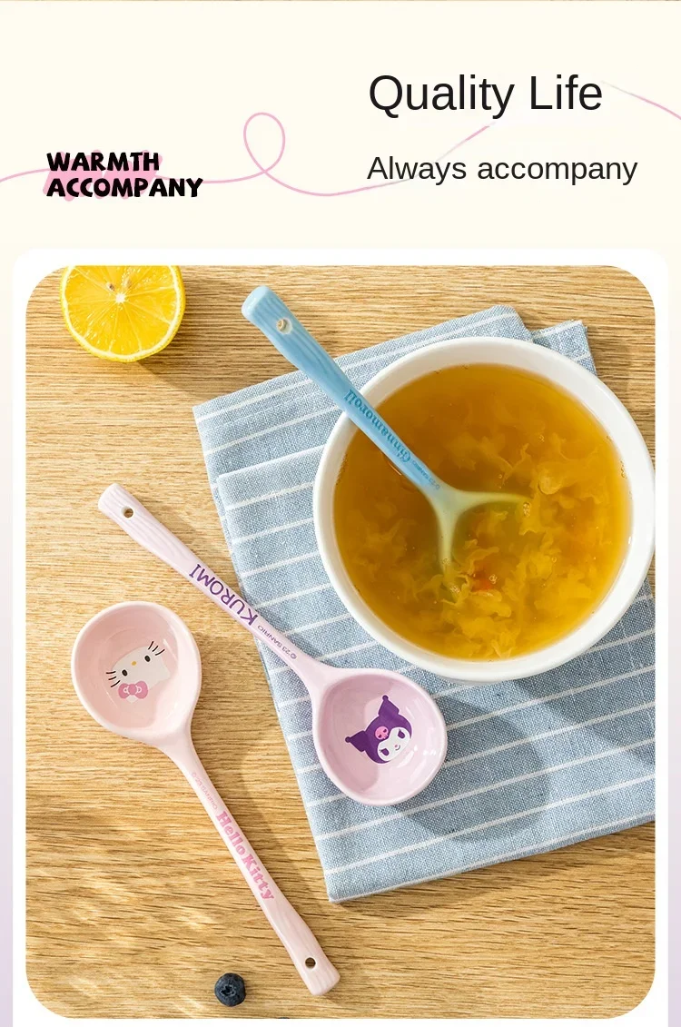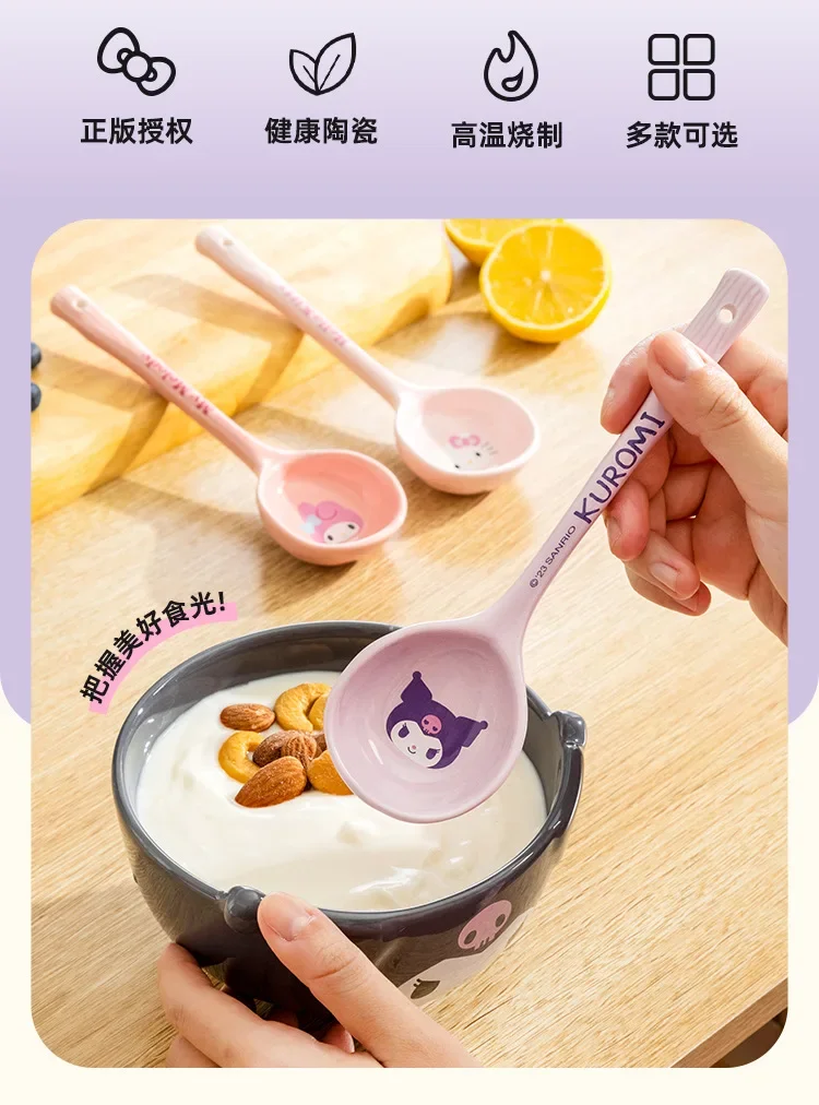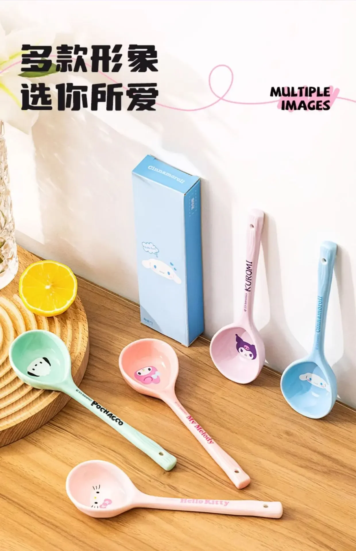 Sanrios Kuromi Cinnamoroll My Melody Hellokittys Anime Kawaii Figure Ceramic Ladle Household Soup Spoon Ceramics Tableware Gifts