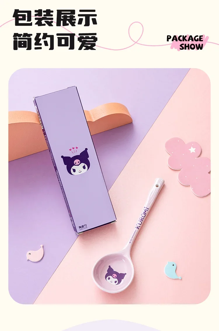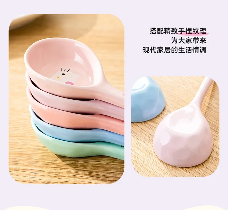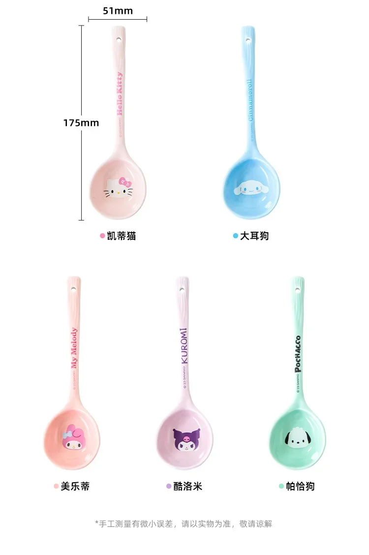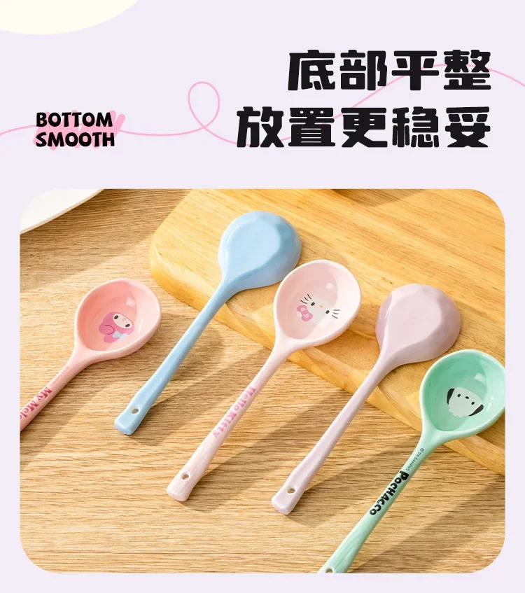 Sanrios Kuromi Cinnamoroll My Melody Hellokittys Anime Kawaii Figure Ceramic Ladle Household Soup Spoon Ceramics Tableware Gifts