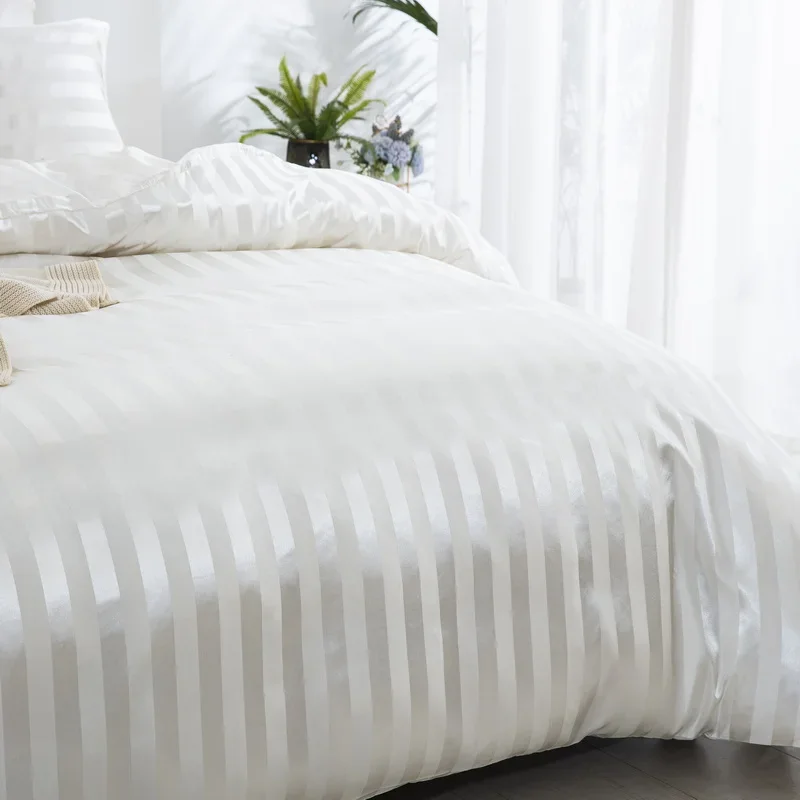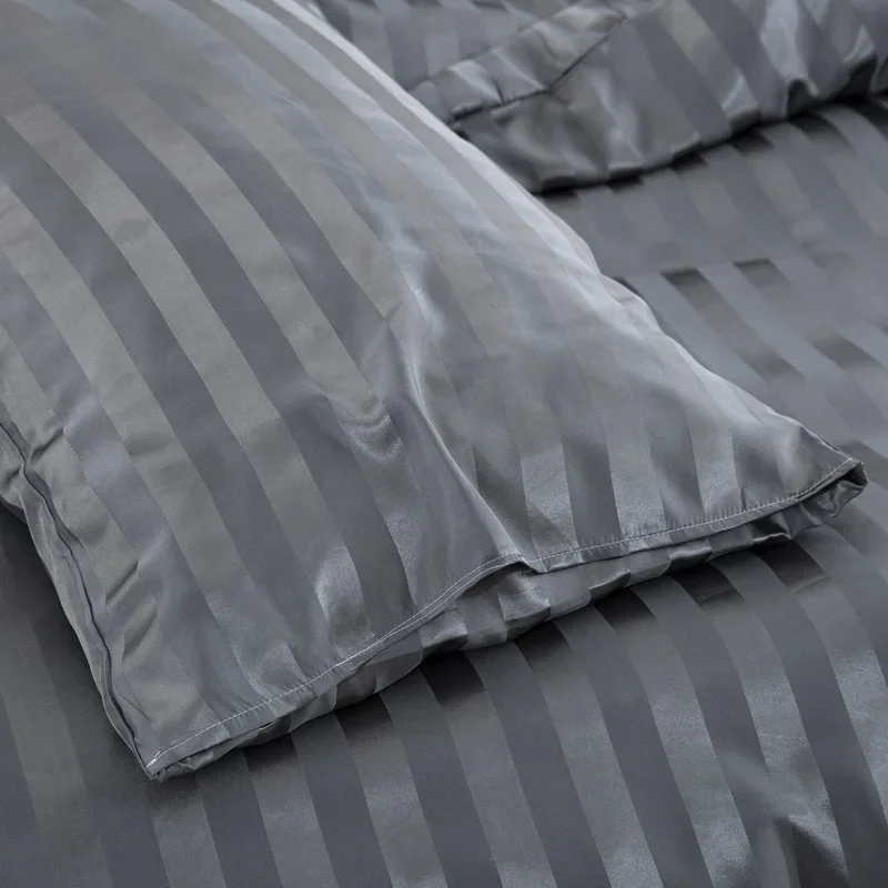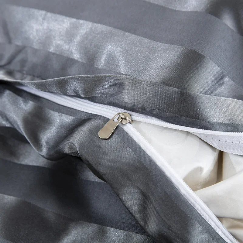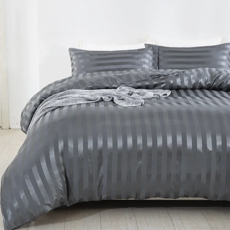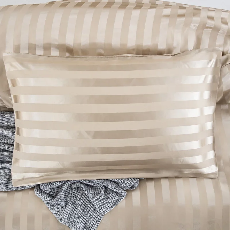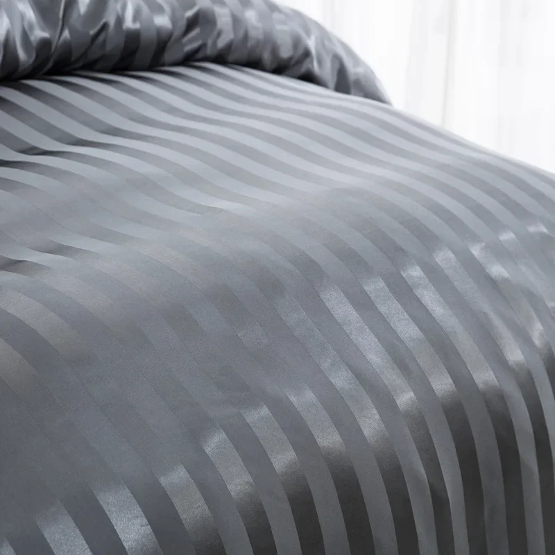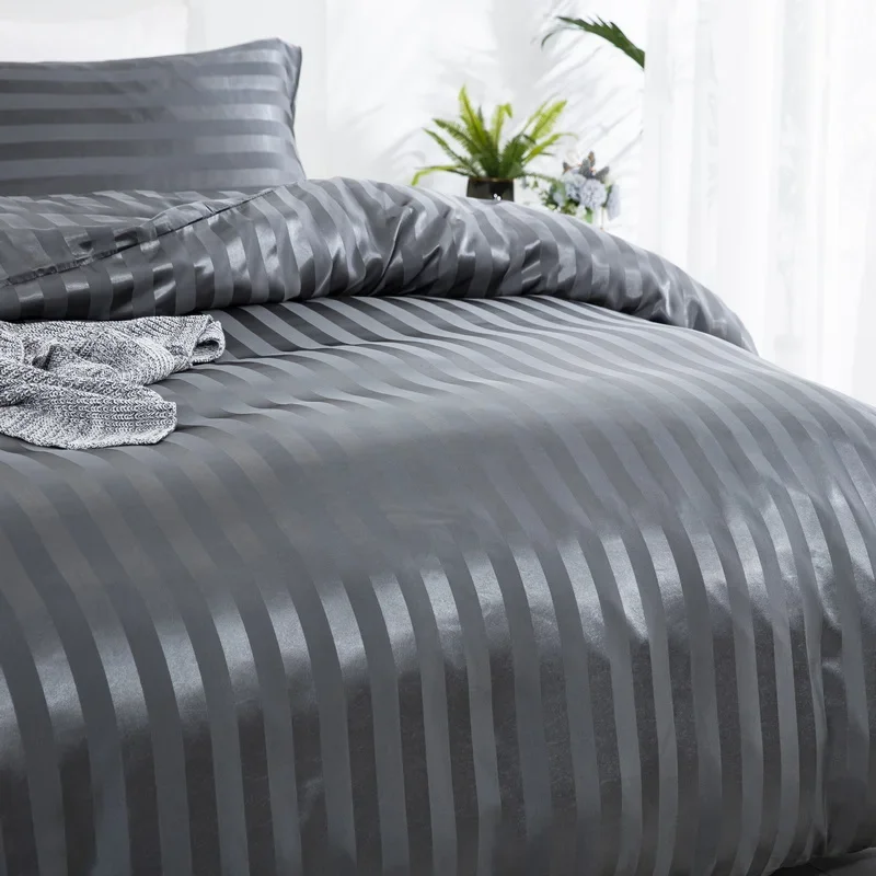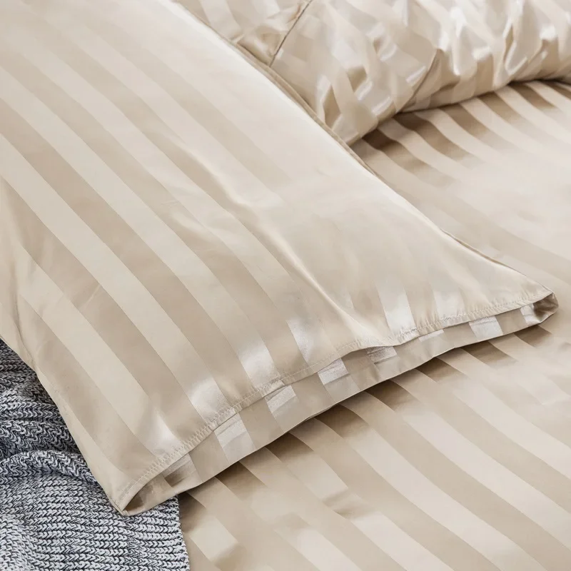Satin Striped Duvet Cover Twin/Full/Queen/King/Single/Double Size Set, Luxury Silky Like Khaki Stripe Duvet Cover Bedding Set