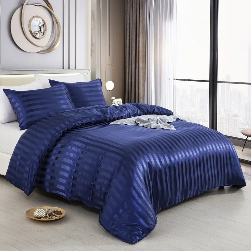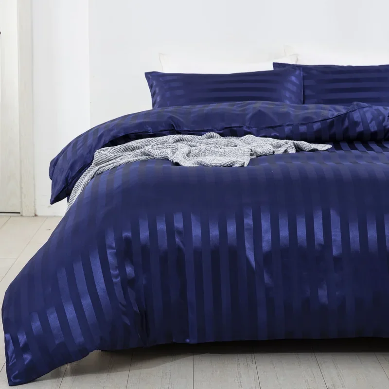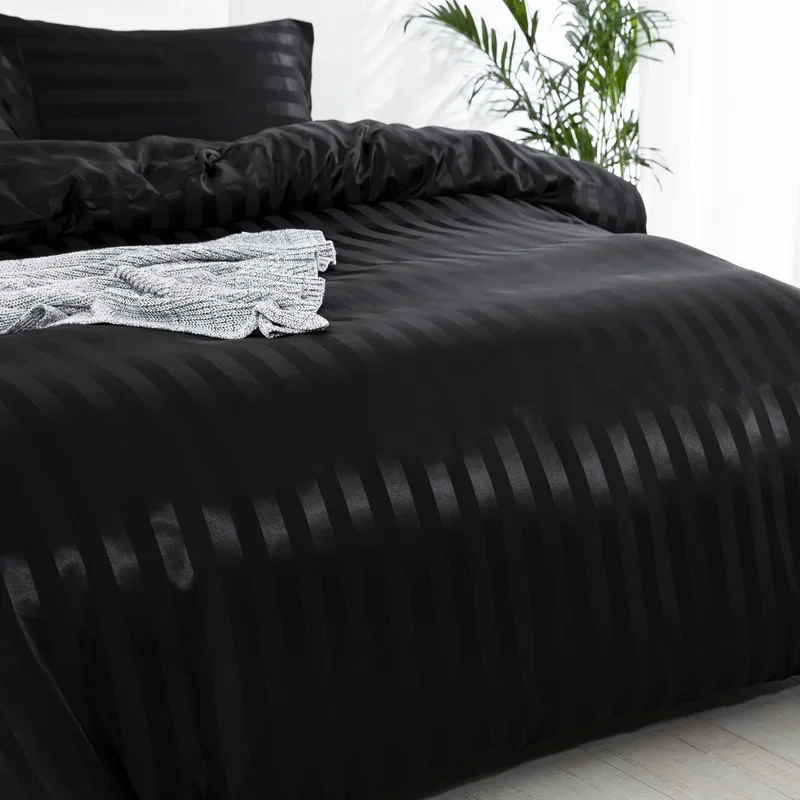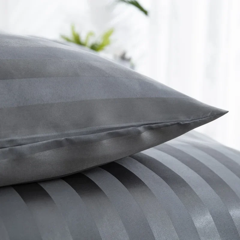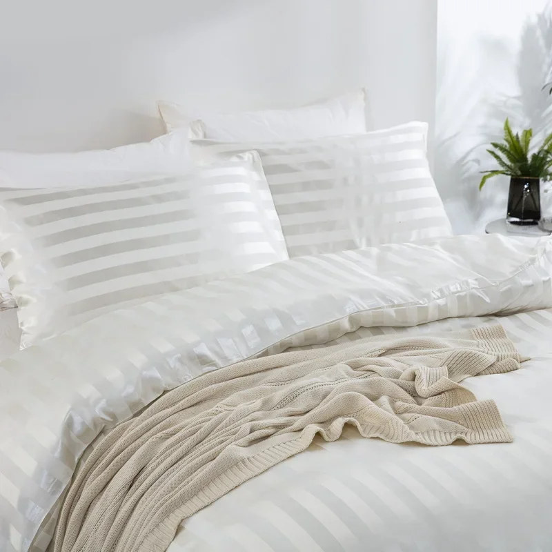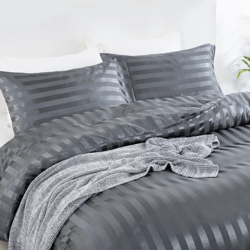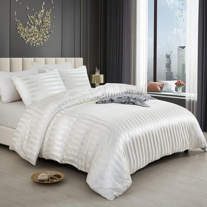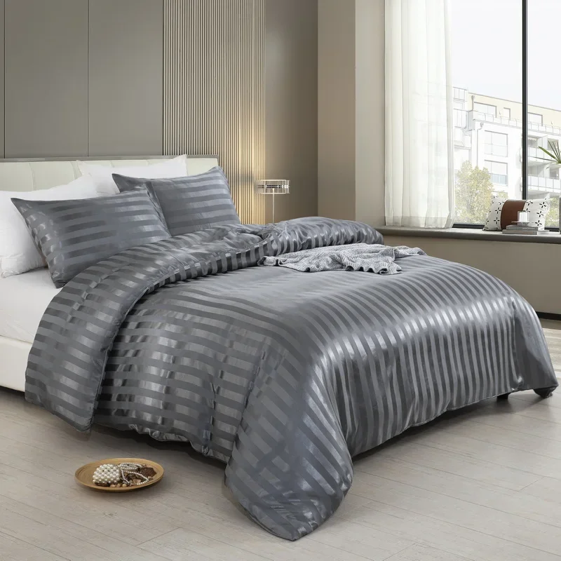 Satin Striped Duvet Cover Twin/Full/Queen/King/Single/Double Size Set, Luxury Silky Like Khaki Stripe Duvet Cover Bedding Set