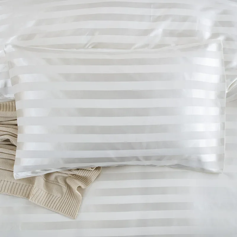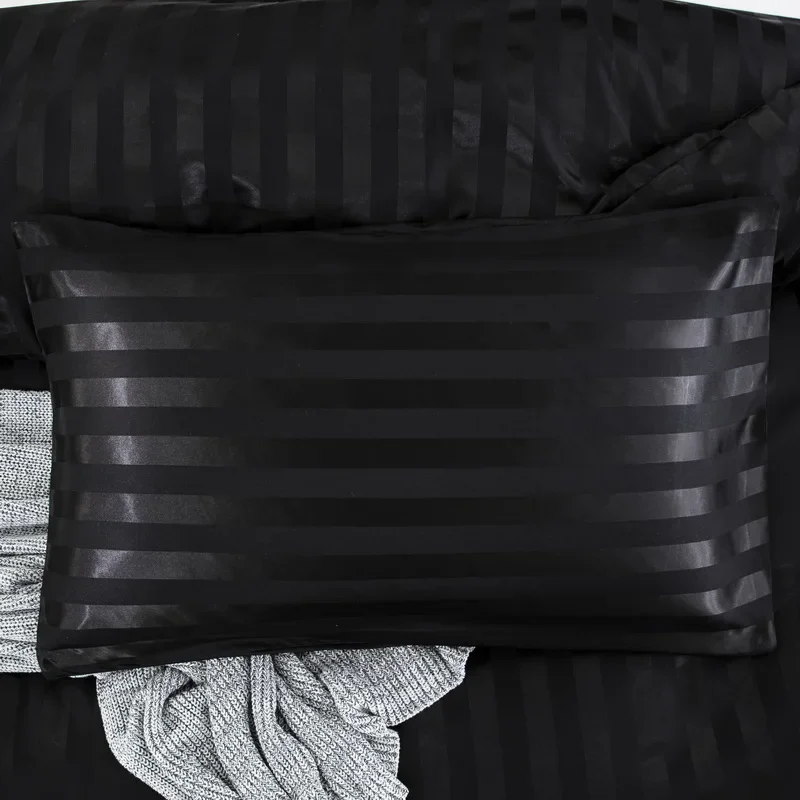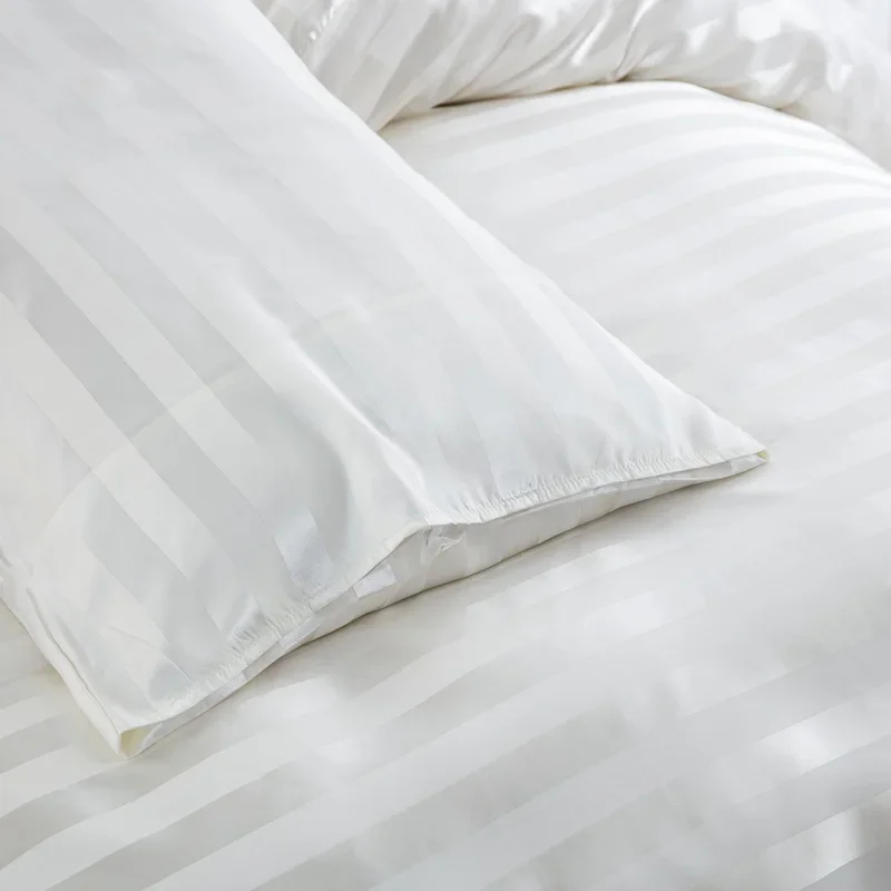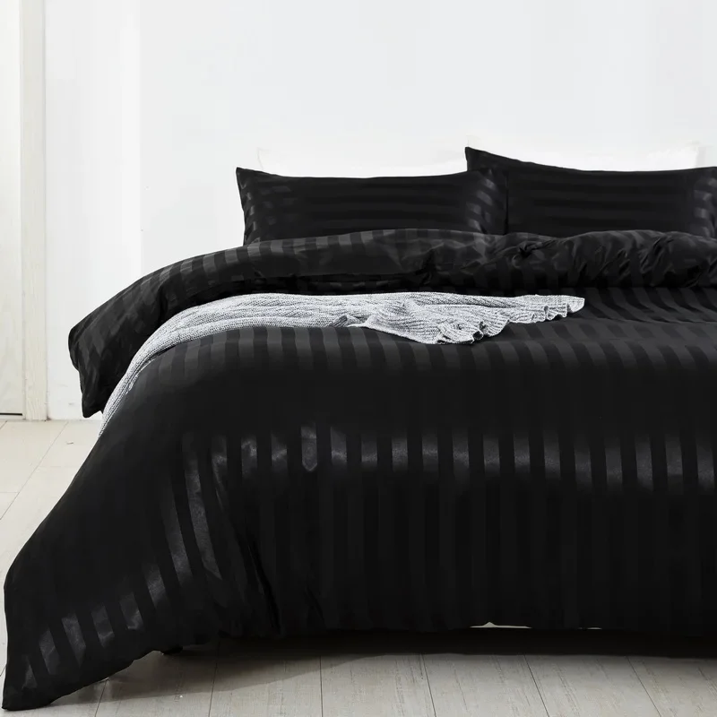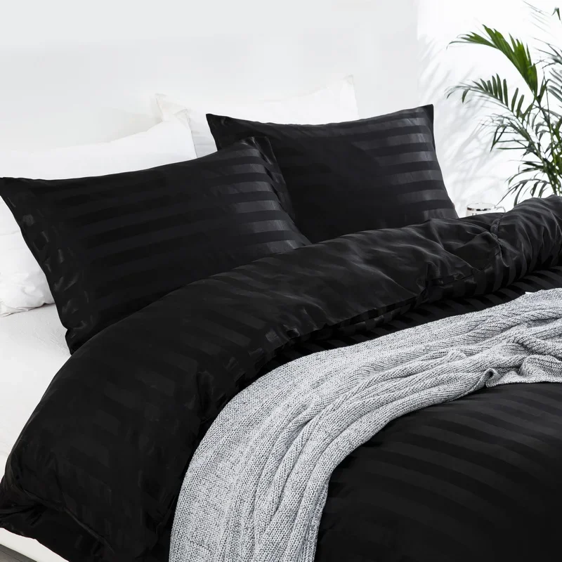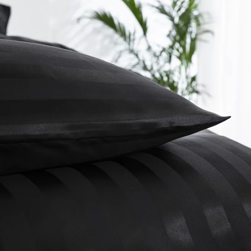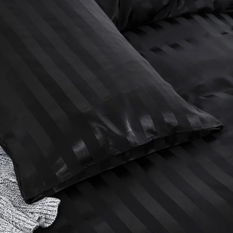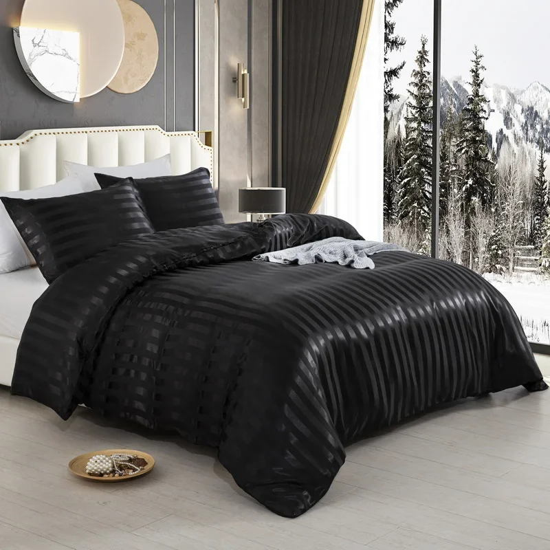 Satin Striped Duvet Cover Twin/Full/Queen/King/Single/Double Size Set, Luxury Silky Like Khaki Stripe Duvet Cover Bedding Set