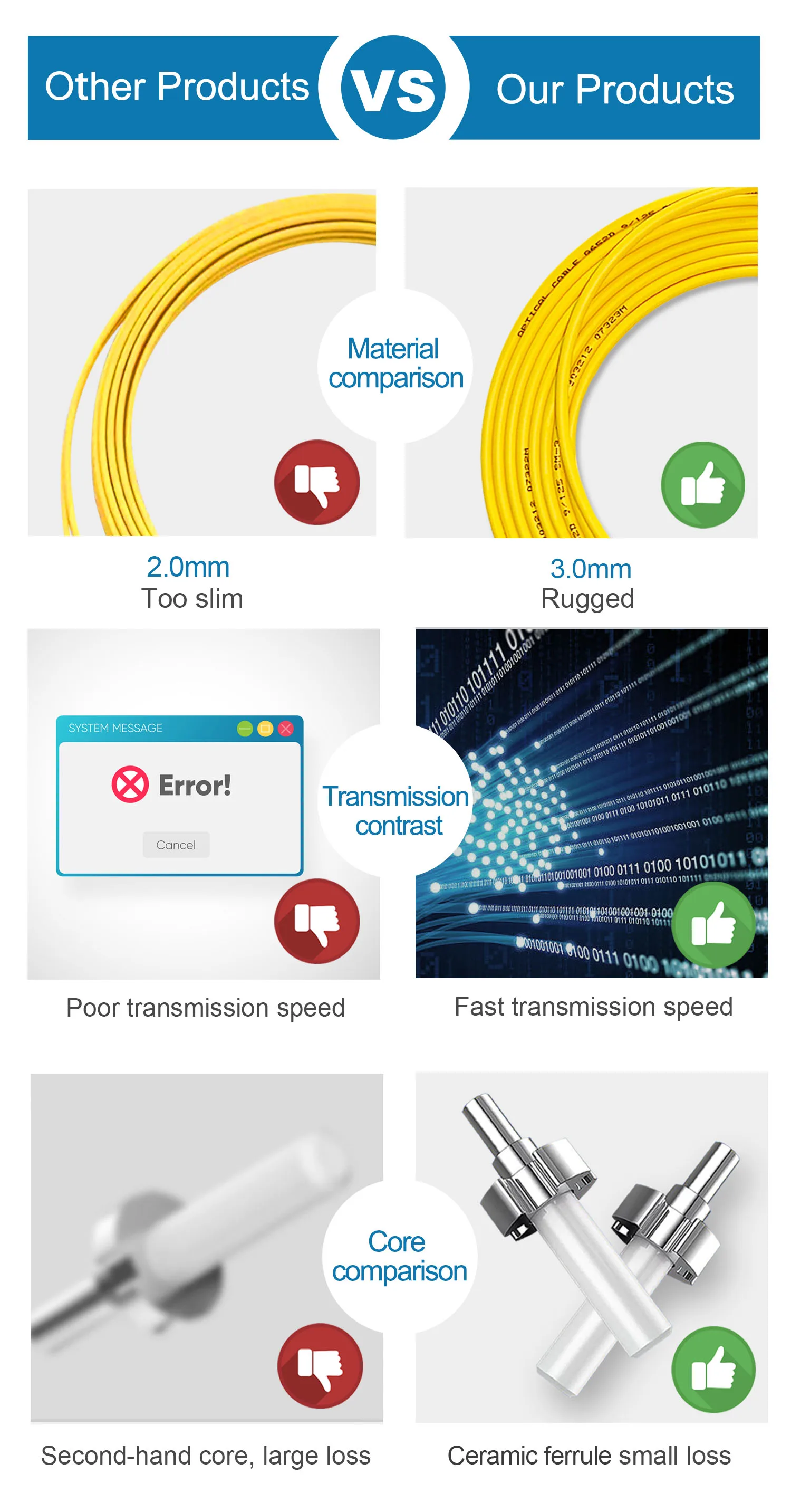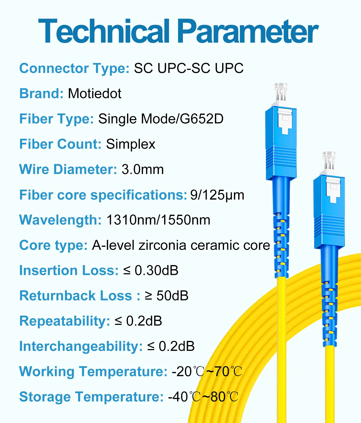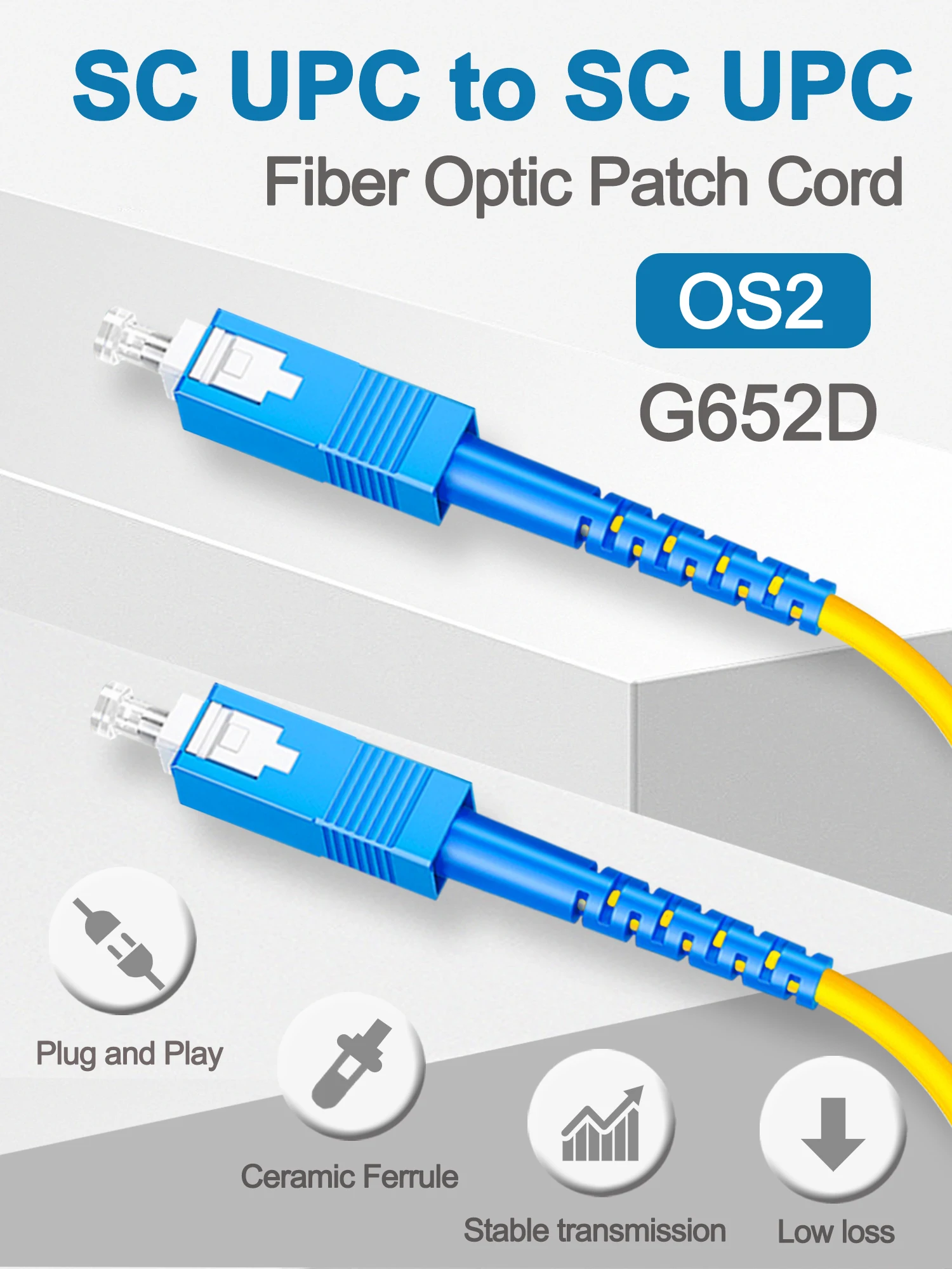 SC UPC Fiber Optical Patch Jumper Cable 3.0mm OS2 Cord Singlemode Simplex 1m 3m 5m PVC G652D SM 1310/1550nm FTTH