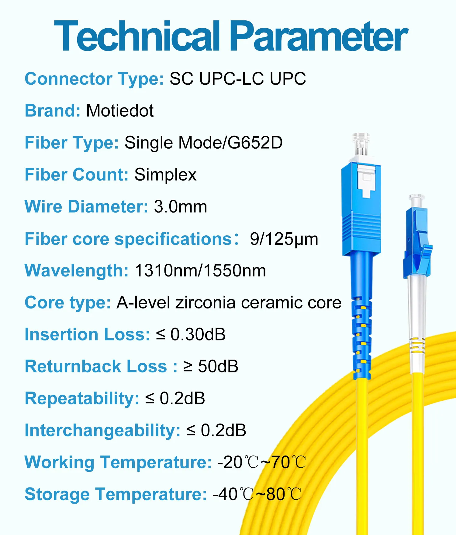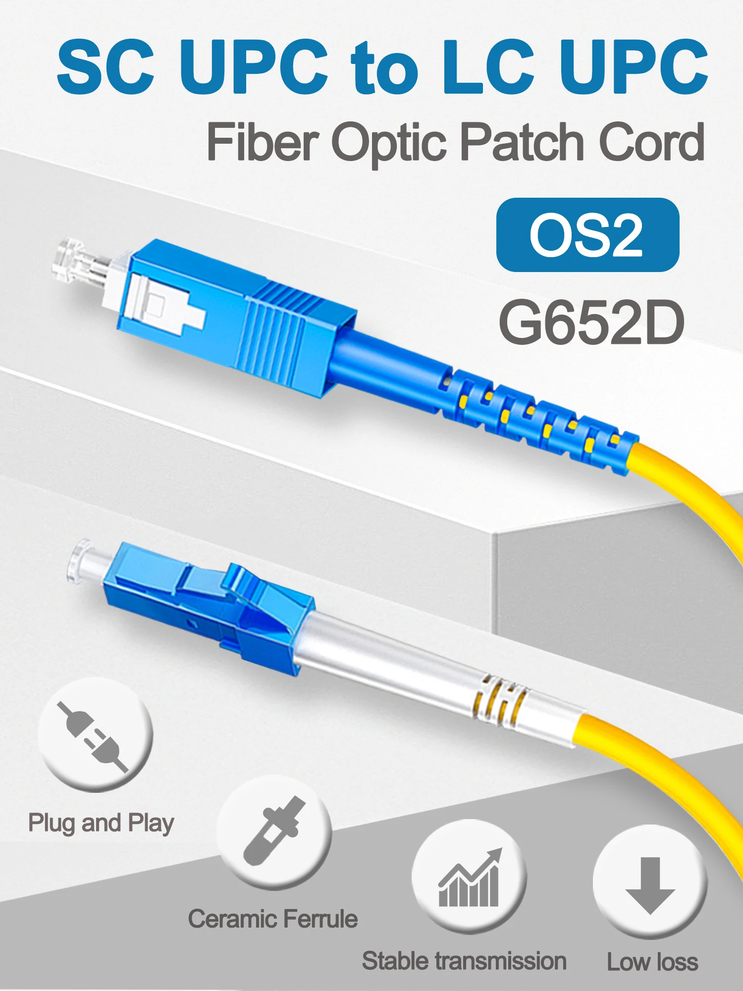 SC UPC to LC UPC Fiber Optical Patch Jumper Cable 3.0mm OS2 Cord Singlemode Simplex 1m 3m 5m PVC G652D SM 1310/1550nm FTTH