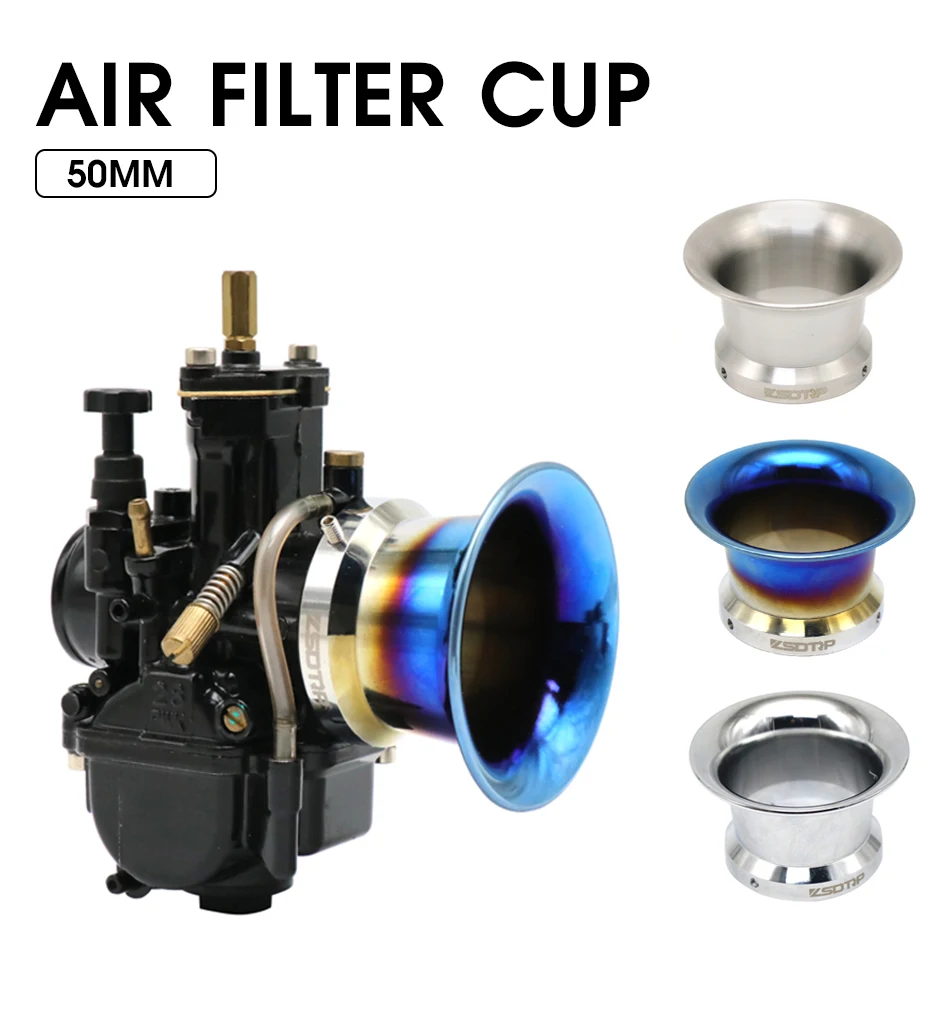 Sclmotos 50mm Stainless Steel Carburetor Air Filter Cup Velocity Stack Funnel Trumpet For PE PWK 21-30MM Motorcycle Carburetor