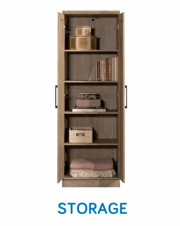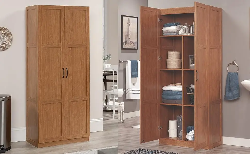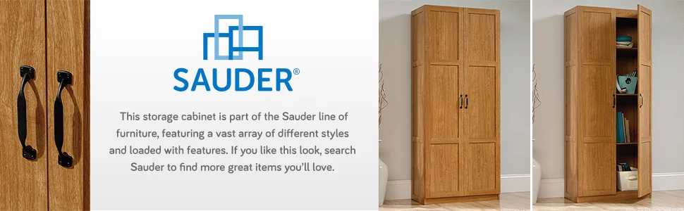 No storage? No problem. Check out this cabinet from the Sauder Select collection. This double-door storage cabinet can easily store bottles, boxes and bins of varying heights and widths, perfect for a variety of general storage needs. This durable storage cabinet has a full-width upper shelf perfect for storing large blankets, totes of collectibles, bath towels and more. With four adjustable shelves, this storage cabinet is the ideal place to organize office supplies for an efficient workspace. Finished in a beautiful Highland Oak and detailed with frame and panel doors and sides, this tall cabinet is ideal for kitchen pantry items, basement storage, garage organization, laundry room efficiency, or anywhere a storage solution is needed. Stash the chaos of craft supplies in style with this storage cabinet with doors from the Sauder Select collection. Sauder designers travel the world and bring back the best and latest in style, finish, and color trends. This inspiring world travel is evident in the cutting edge and innovative furniture solutions we offer to you!