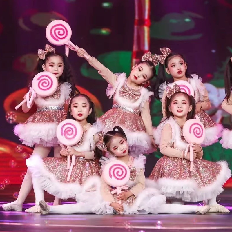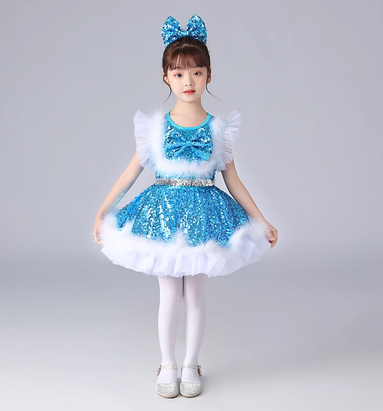 Sequins Dance Dress Girls Kids Dance Costume Girl Kids Dance Outfit Cheerleader Costume Dancewear Dance Wear Girls