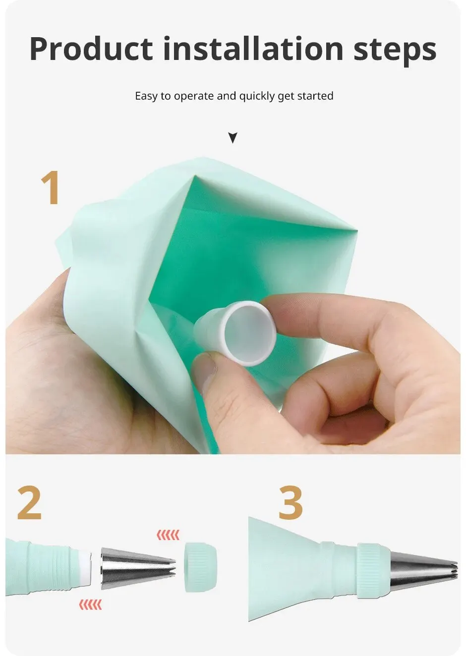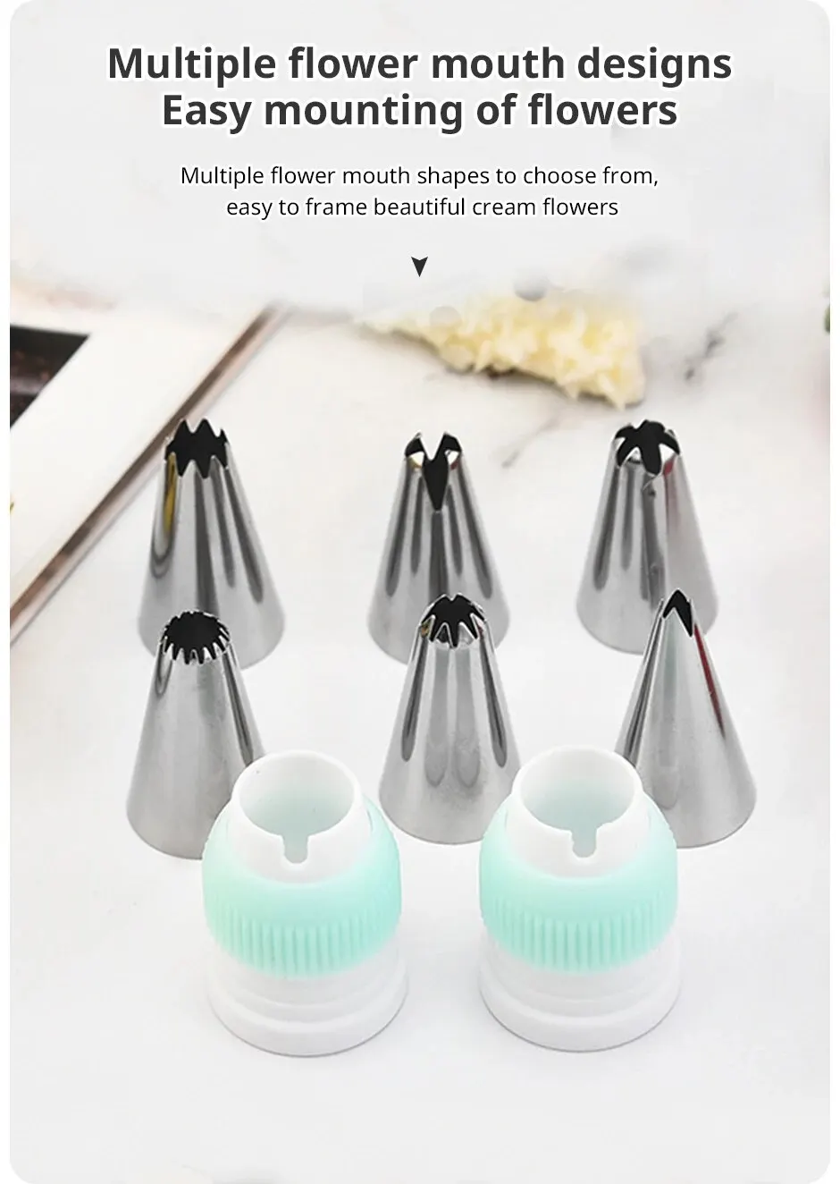 The set includes: mounting nozzle * 6, scraper * 3, mounting bag * 2, silicone ring * 2, converter * 2