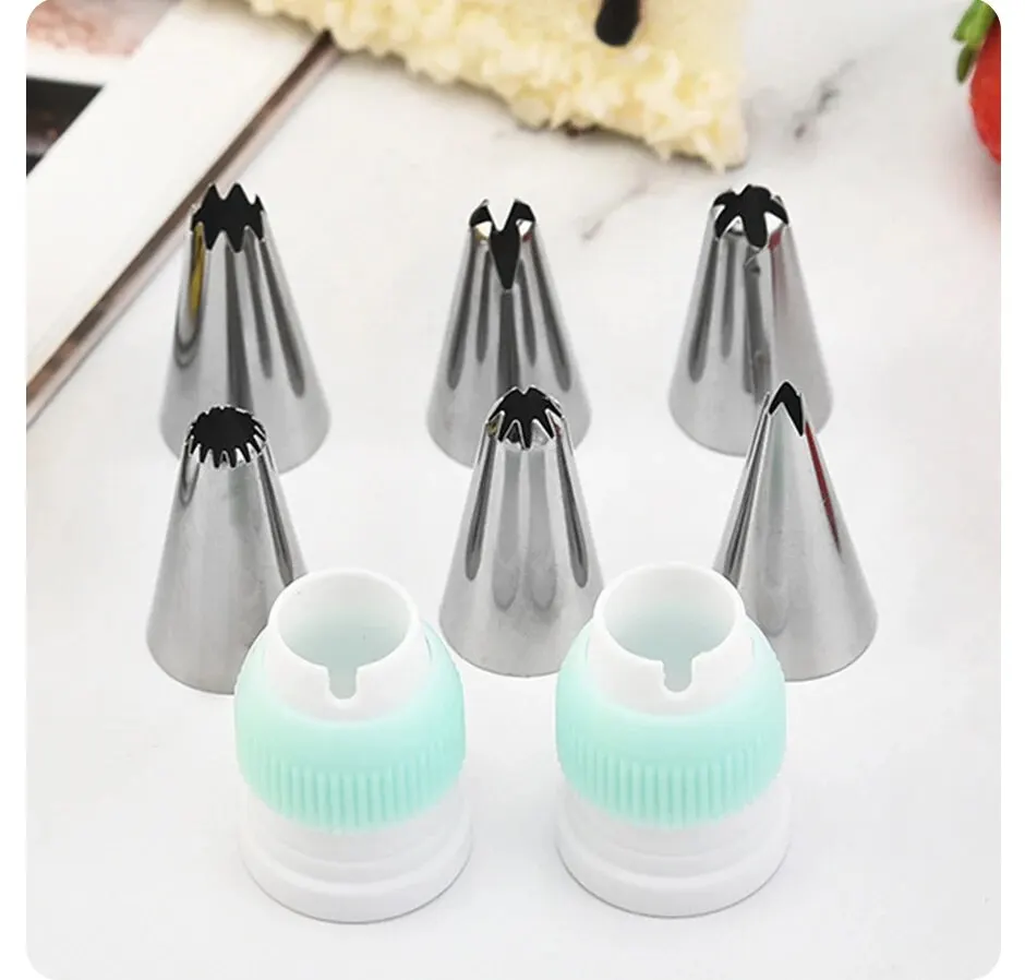Set(15PCS) Stainless Steel Decorative Nozzle Set Plastic Scraper Flower Bag Cream Spatula Household Baking Tools