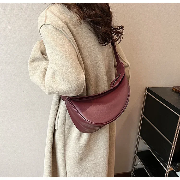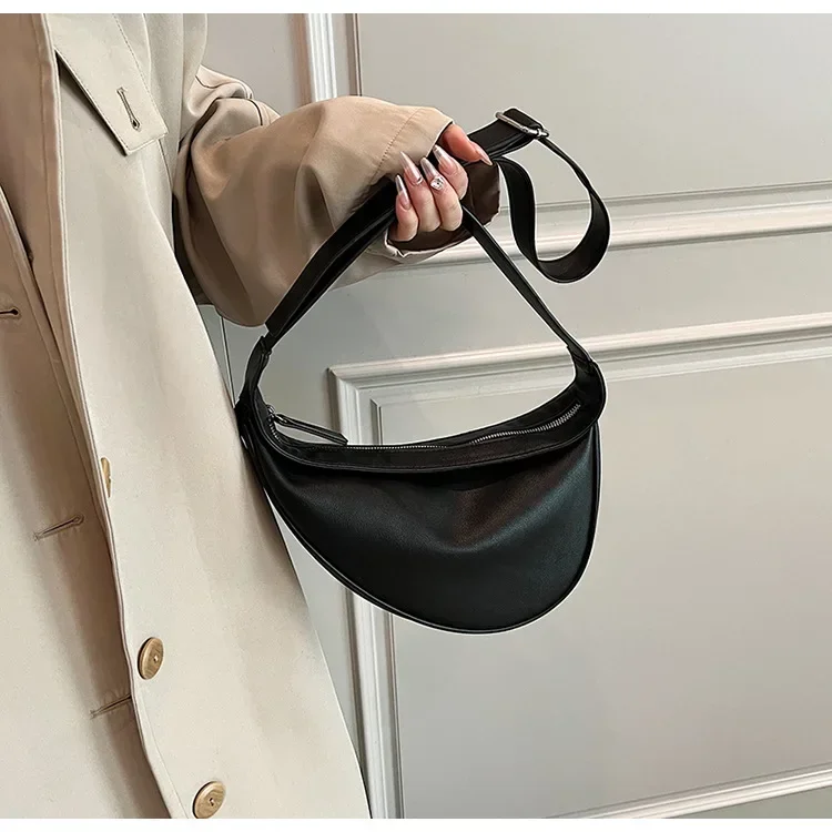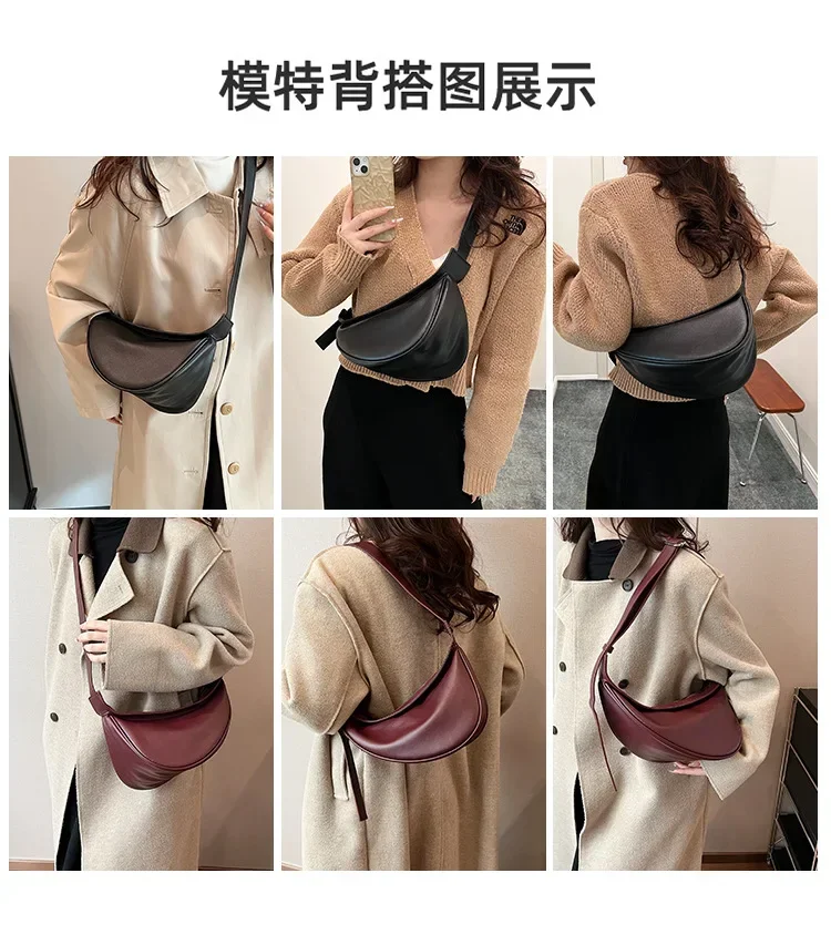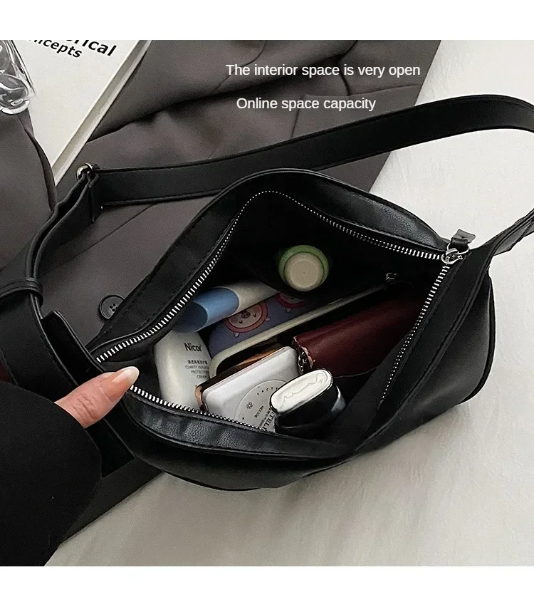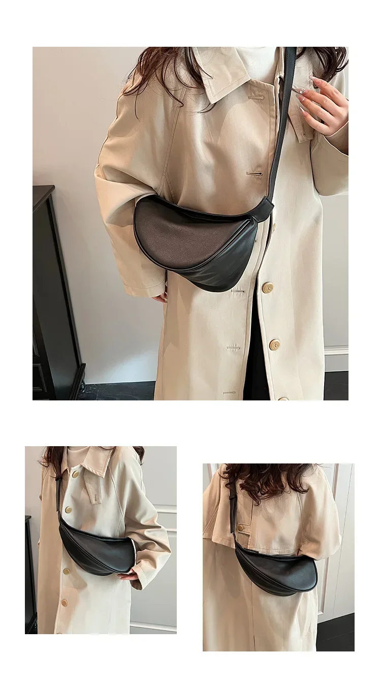 Sewing Thread Shoulder Bags Zipper Women’s Bags 2024 Hot Sale PU High Capacity Handbag Solid Saddle Splicing Bolsas De Mujer