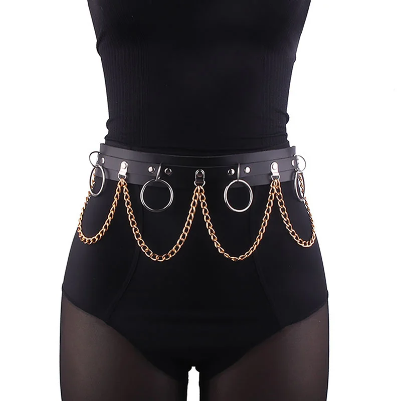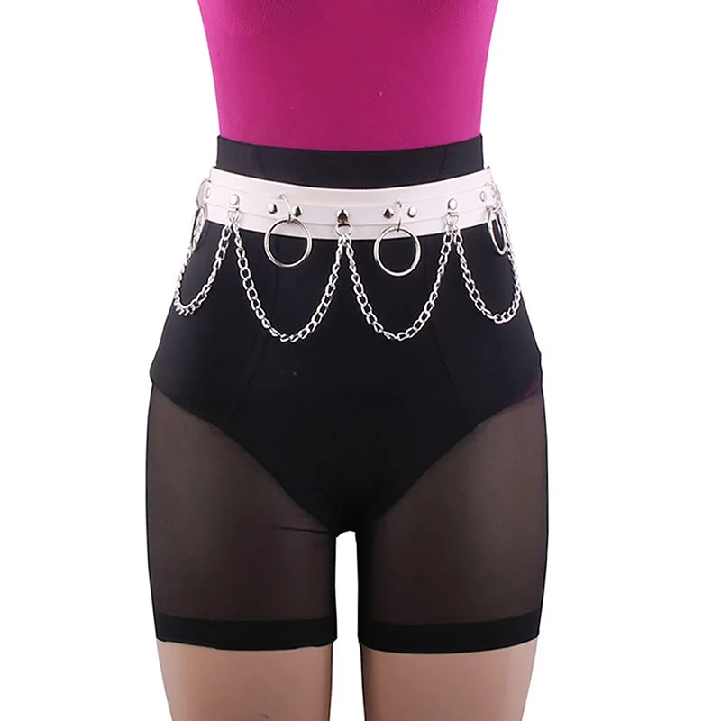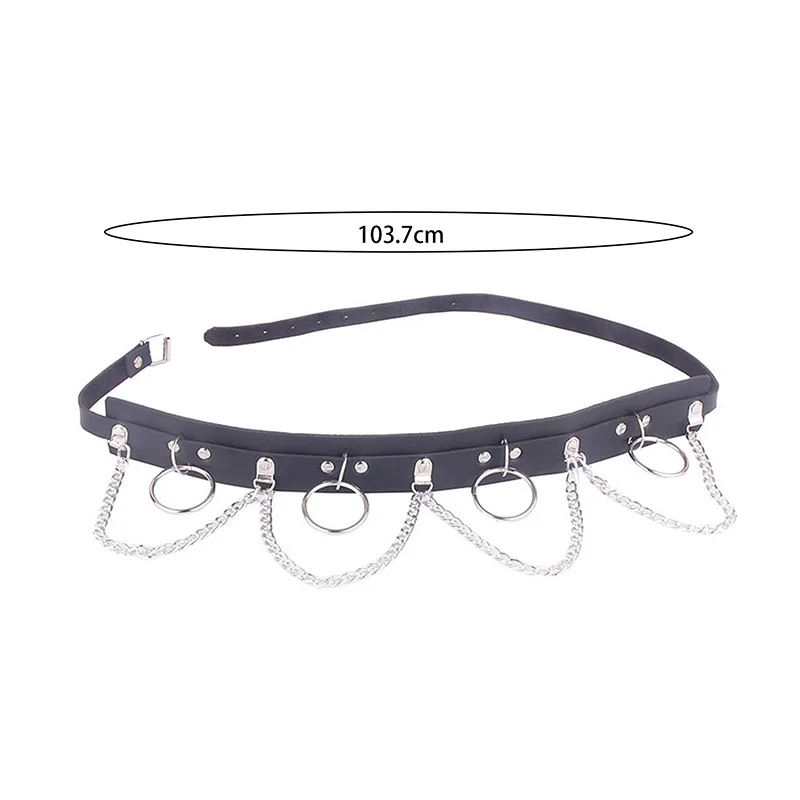Sexy Women Gothic Hiphop Belt with Chain Harajuku Punk Style Jk Waist Adjustable Disco Dancing Pu Dress Jeans Waist Chain