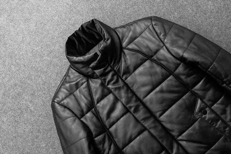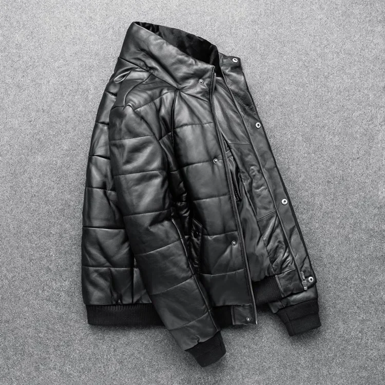 Sheepskin Jacket Top Layer Down Cotton Winter Warm Coat Stand Collar Real Leather Men’s Slim And Thickened Clothing